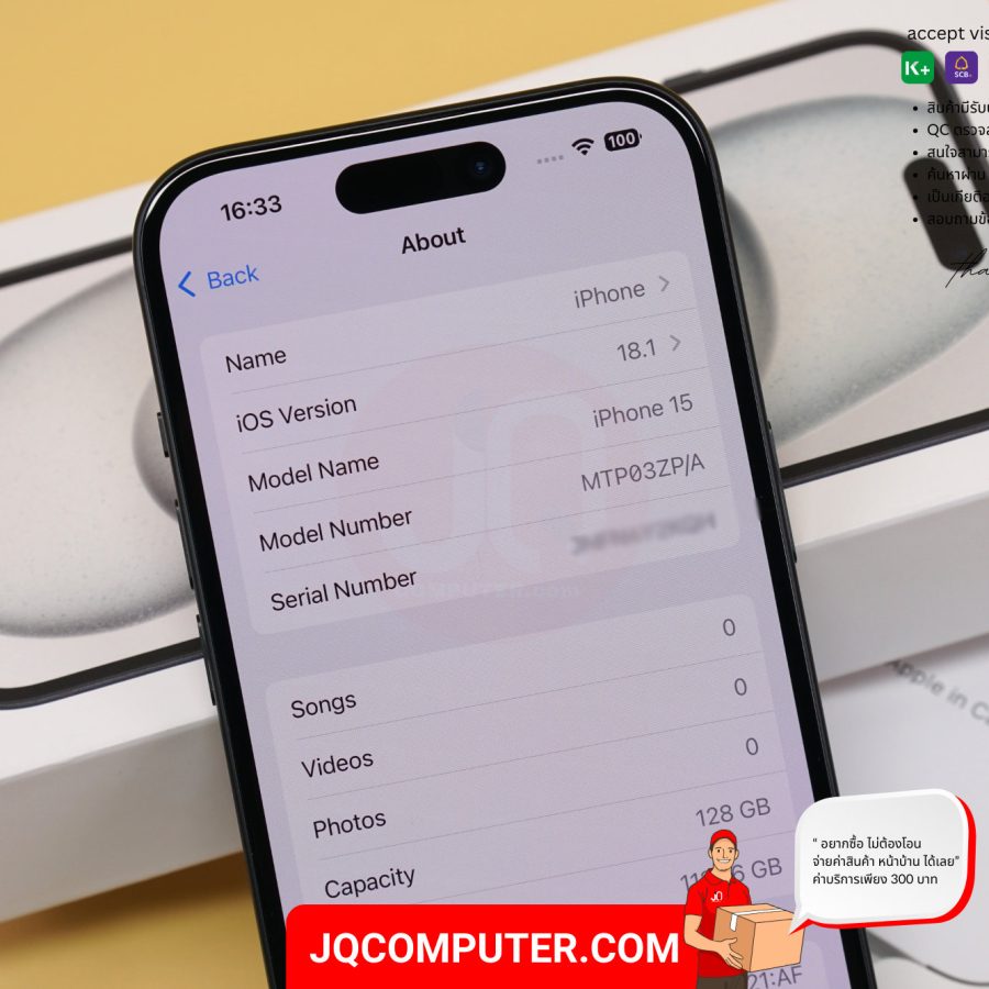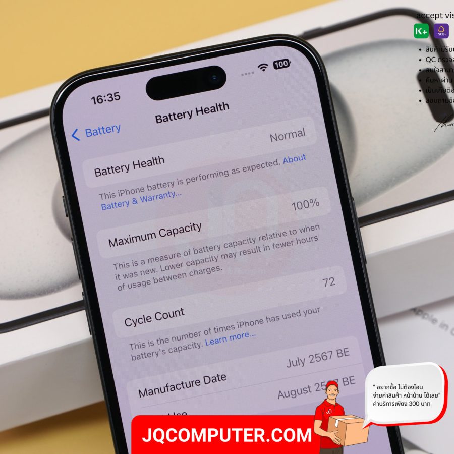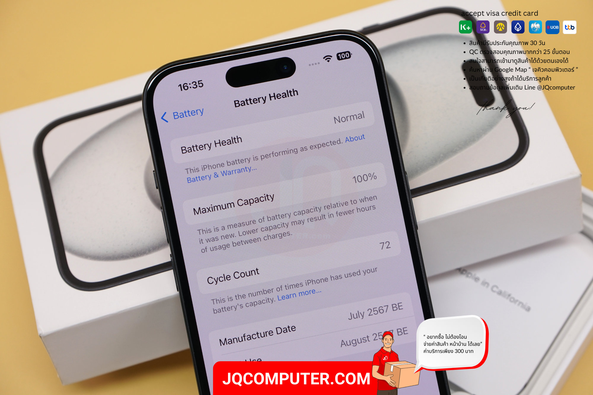 ความจุ 128 GB เครื่องสี Black แบตเตอรี่ 72 Cycle, 100 Health | Condition : Good | อุปกรณ์ครบกล่อง | Apple Warranty 22 August 2025