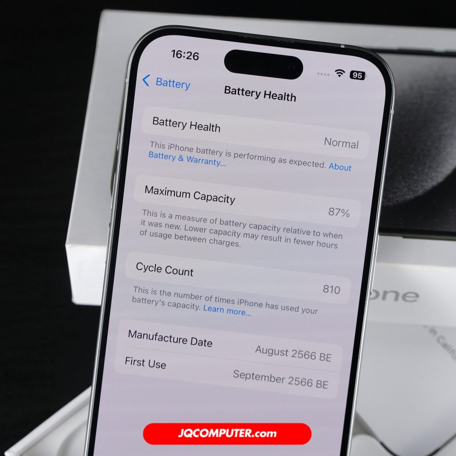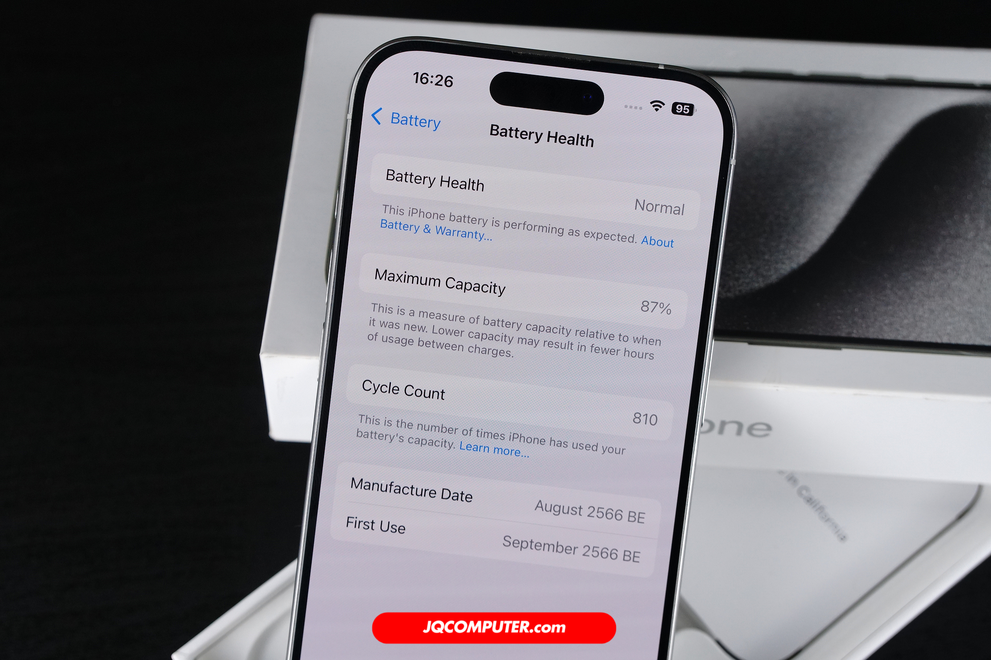 | สุขภาพแบตเตอรี่ | 87% (Cycle Count: 810 รอบ) |