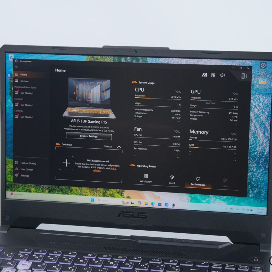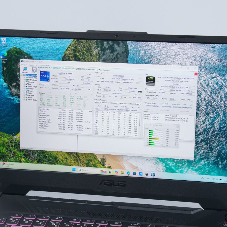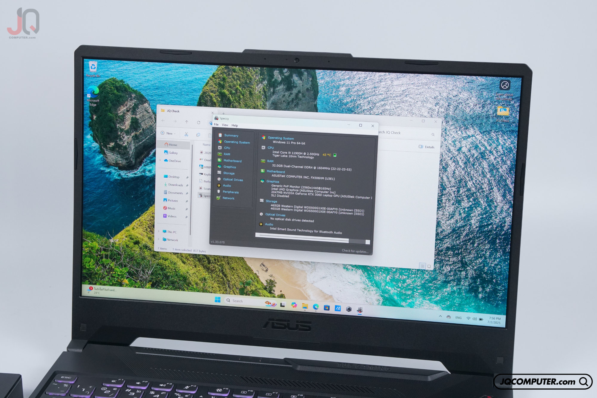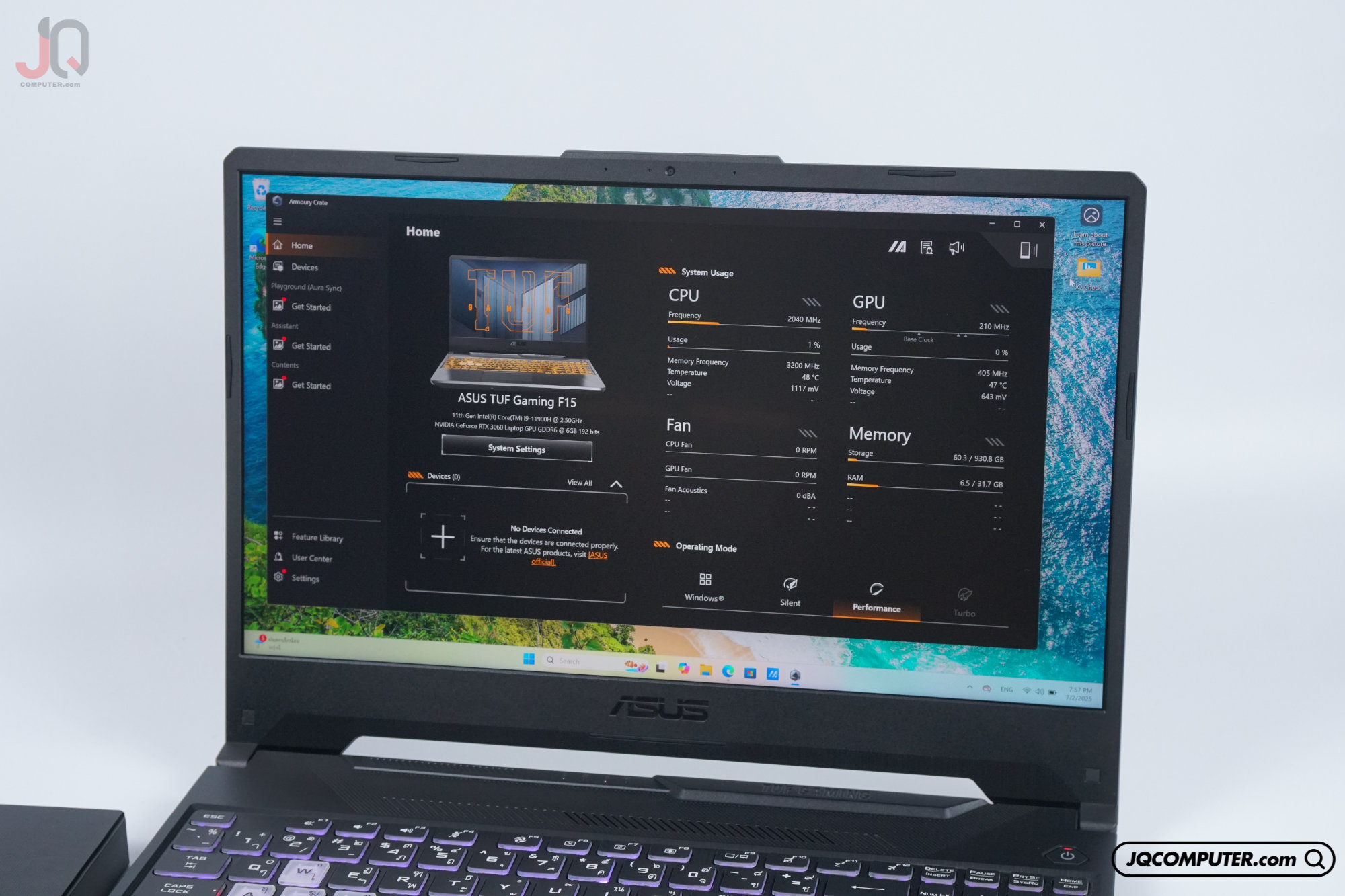 ASUS TUF Gaming F15 สี Eclipse Grey มาพร้อม Intel Core i9-11900H 8-core CPU, NVIDIA GeForce RTX 3060 6 GB GPU, RAM 32 GB, SSD 1 TB, จอ 15.6″ 2K @165Hz แบตเตอรี่ 78.6% มือสอง Grade B ครบชุด Adapter 200 W JQcomputer Warranty 30 Day — เกมมิ่งโน้ตบุ๊กสเปกแรงสำหรับเกม AAA และงานกราฟิก พร้อมใช้งานทันที