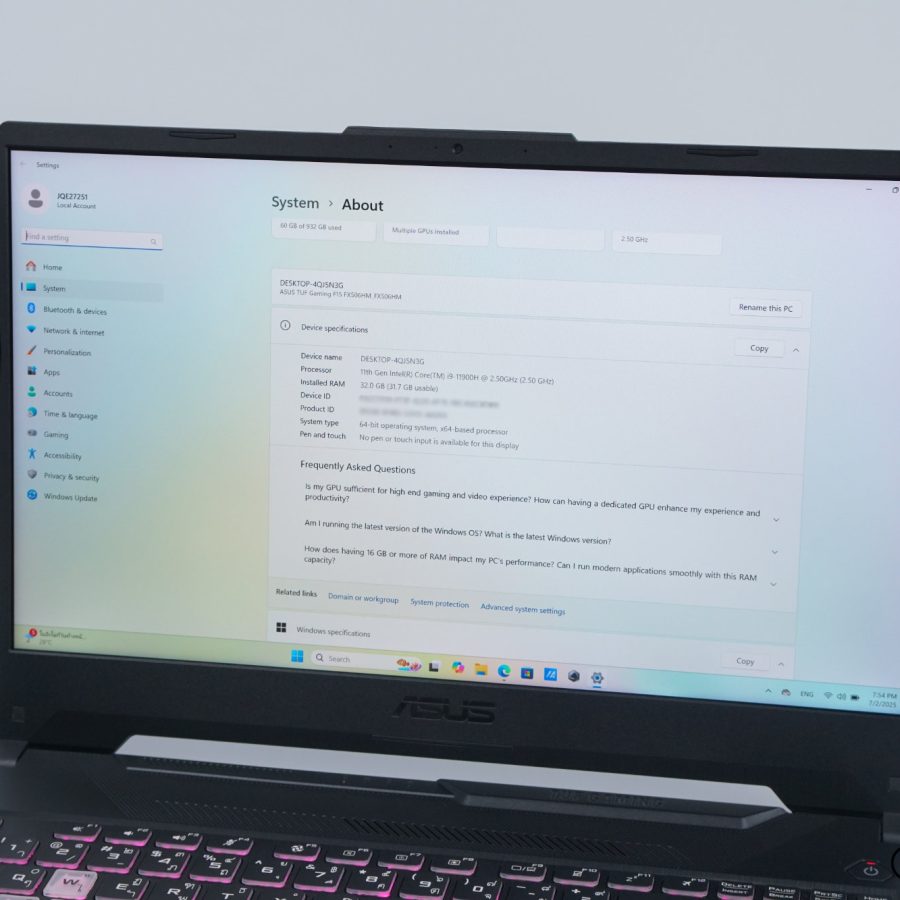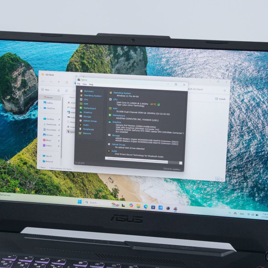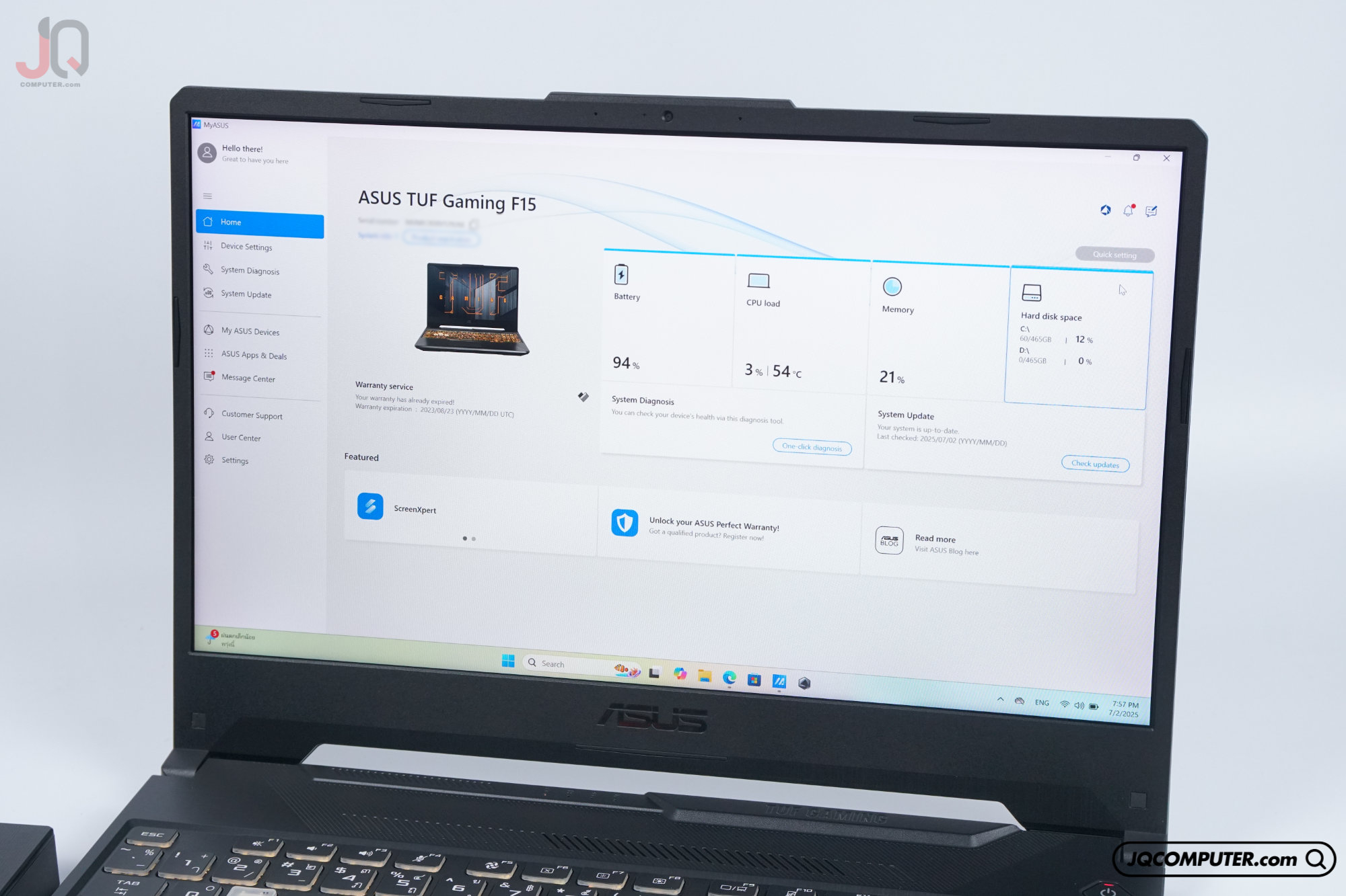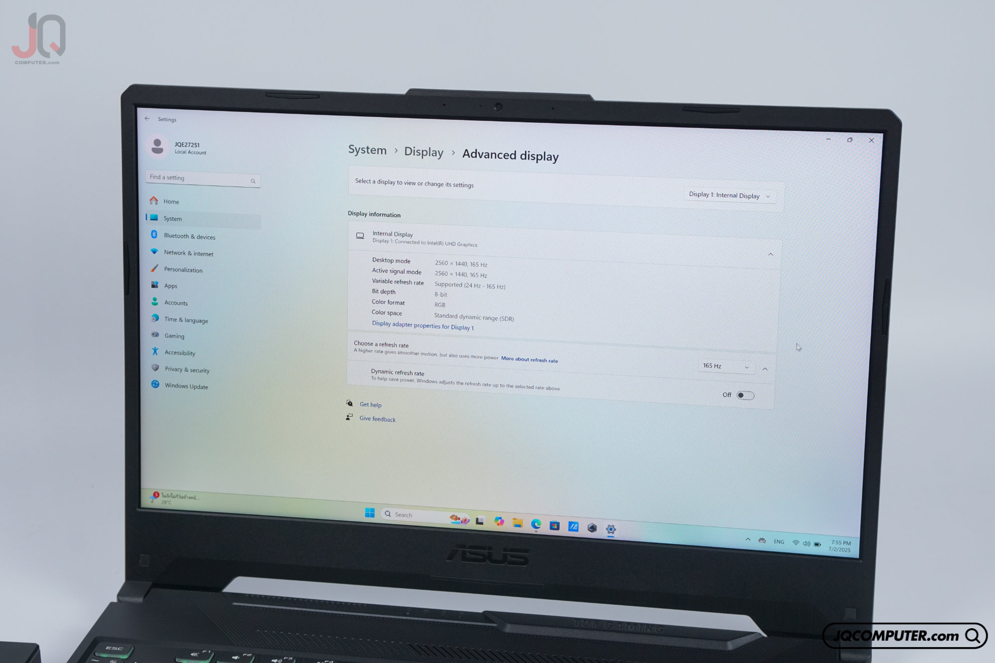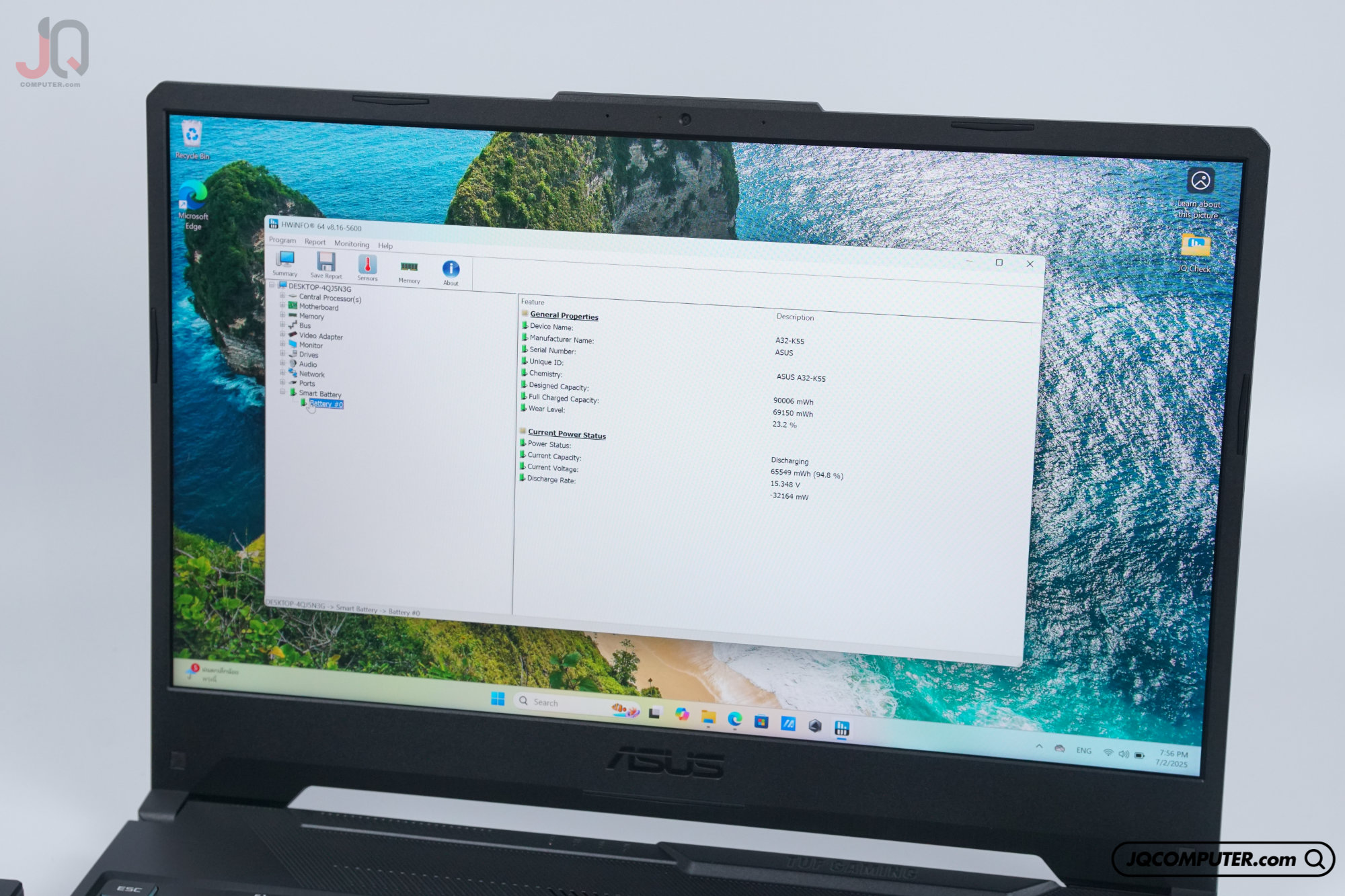 ASUS TUF Gaming F15 สี Eclipse Grey มาพร้อม Intel Core i9-11900H 8-core CPU, NVIDIA GeForce RTX 3060 6 GB GPU, RAM 32 GB, SSD 1 TB, จอ 15.6″ 2K @165Hz แบตเตอรี่ 78.6% มือสอง Grade B ครบชุด Adapter 200 W JQcomputer Warranty 30 Day — เกมมิ่งโน้ตบุ๊กสเปกแรงสำหรับเกม AAA และงานกราฟิก พร้อมใช้งานทันที