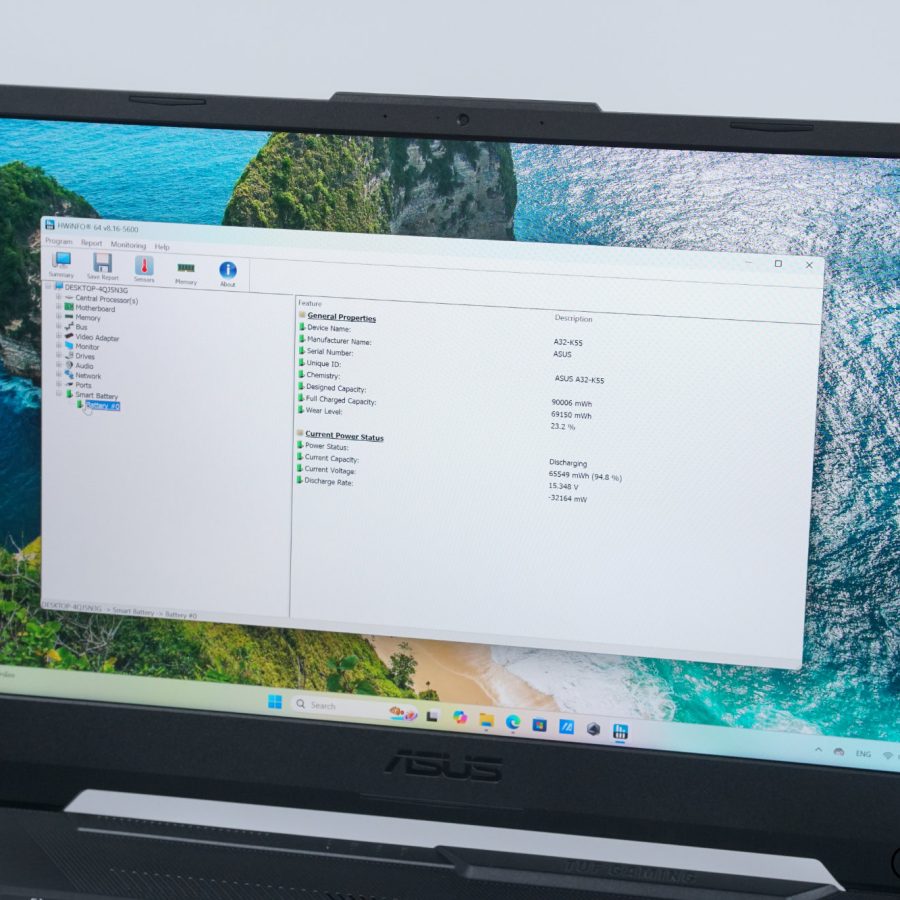 แบตเตอรี่ | Design 90 006 mWh • Full 70 815 mWh Health 78.6 % |