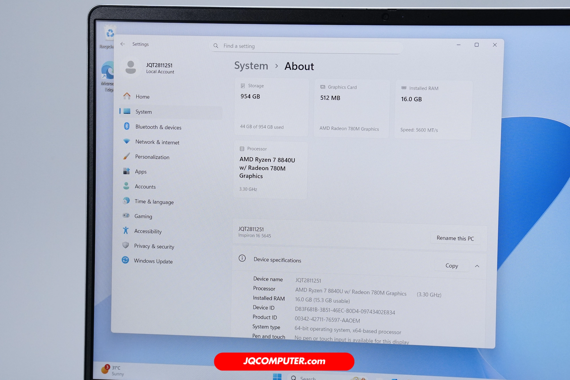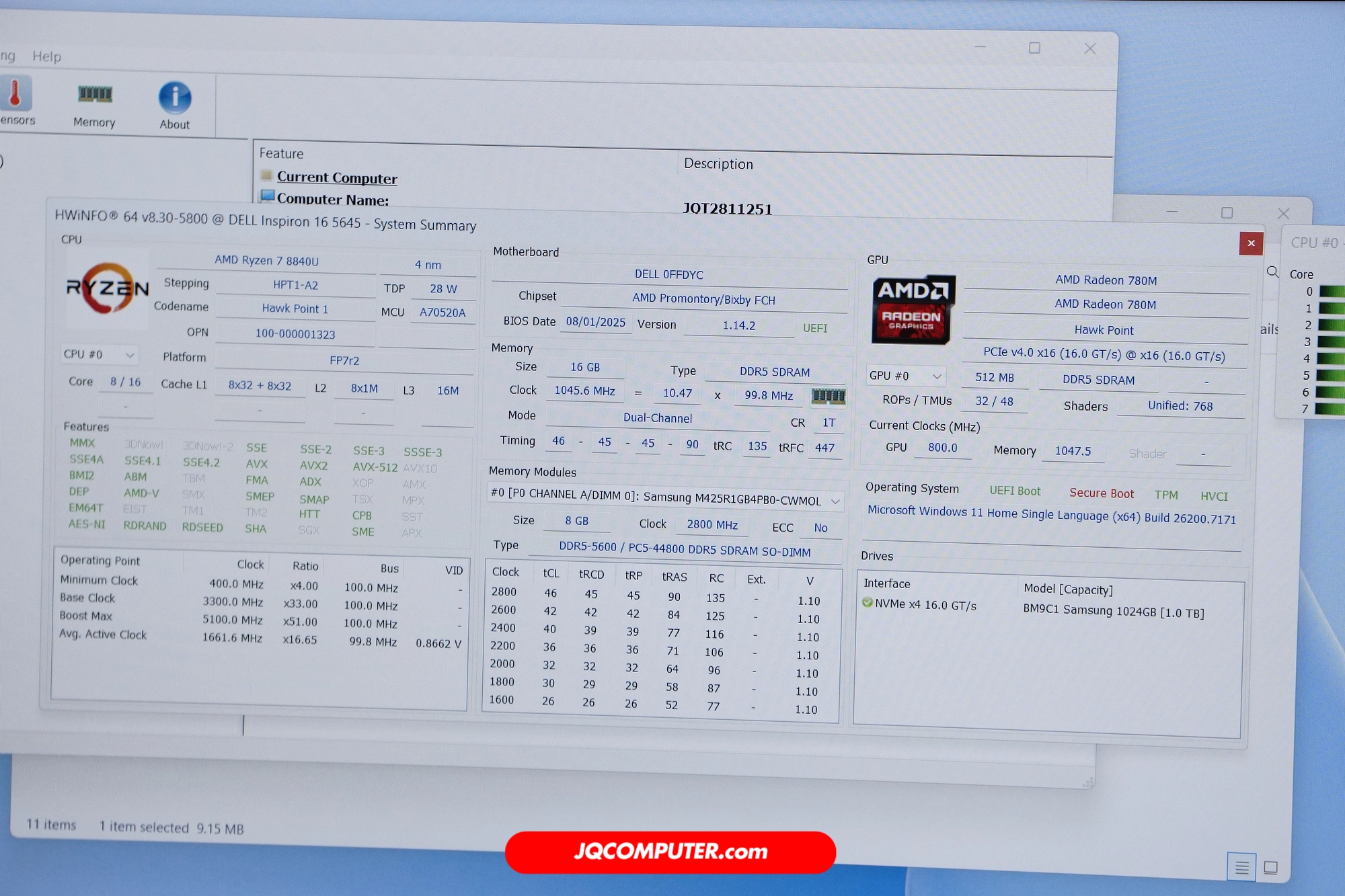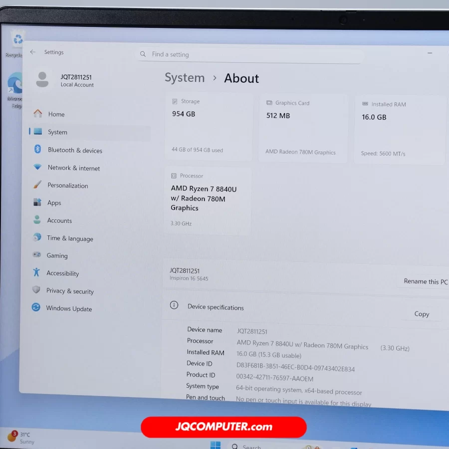 | โปรเซสเซอร์ | AMD Ryzen 7 8840U |