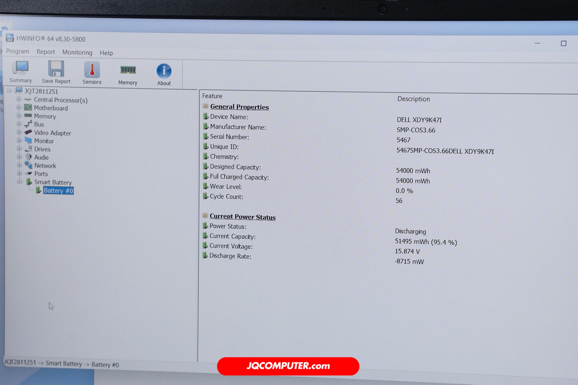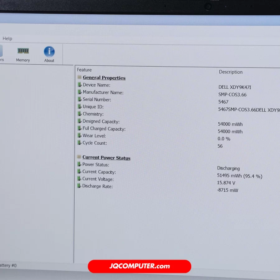 | สุขภาพแบตเตอรี่ | 100% (Cycle Count: 56 รอบ) |
