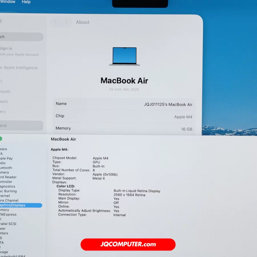 | โปรเซสเซอร์ | Apple M4 (CPU 8-core) |