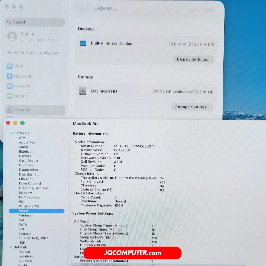 | สุขภาพแบตเตอรี่ | 100% (Cycle Count: 5 รอบ) |