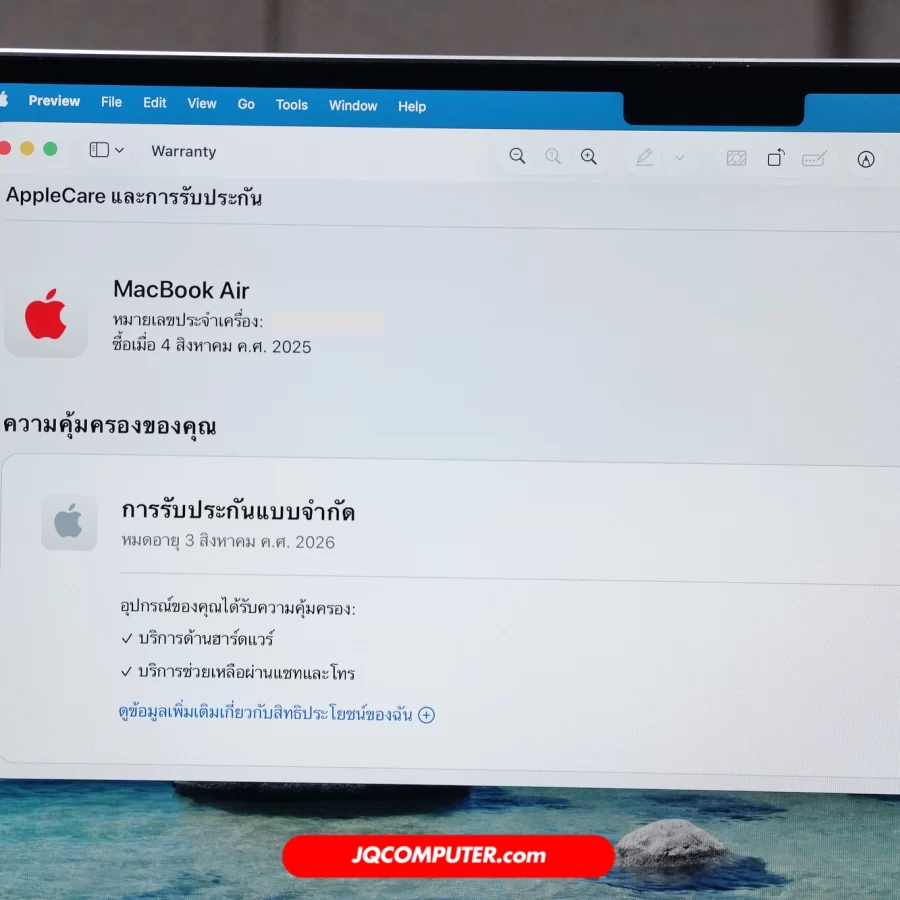 | การรับประกัน | ประกันศูนย์ Apple ถึง 3 August 2026 |