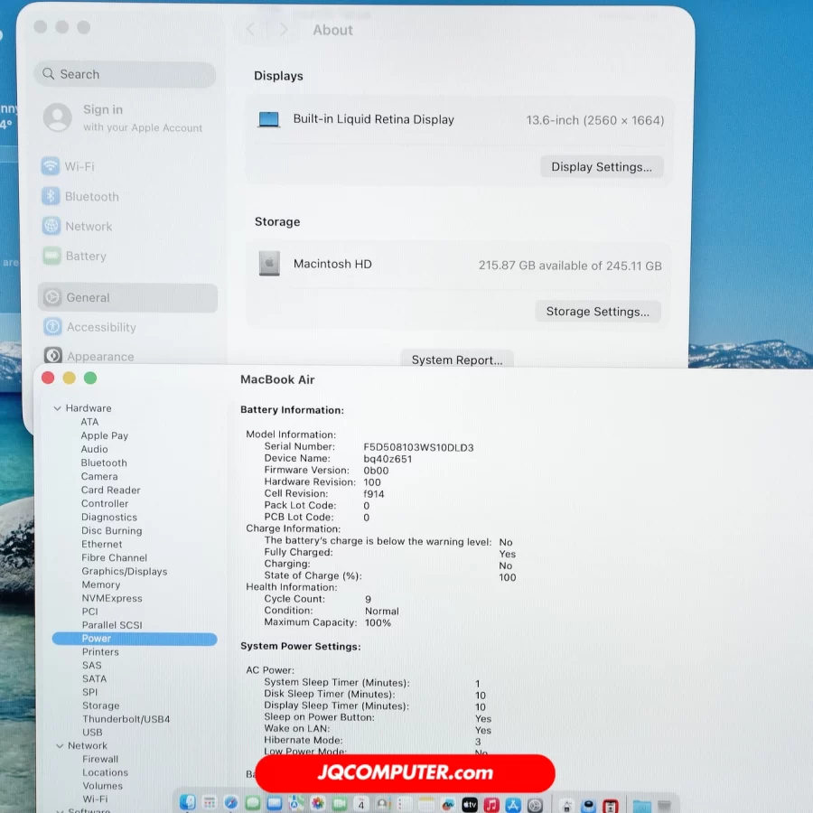| สุขภาพแบตเตอรี่ | 100% (Cycle Count: 9 รอบ) |