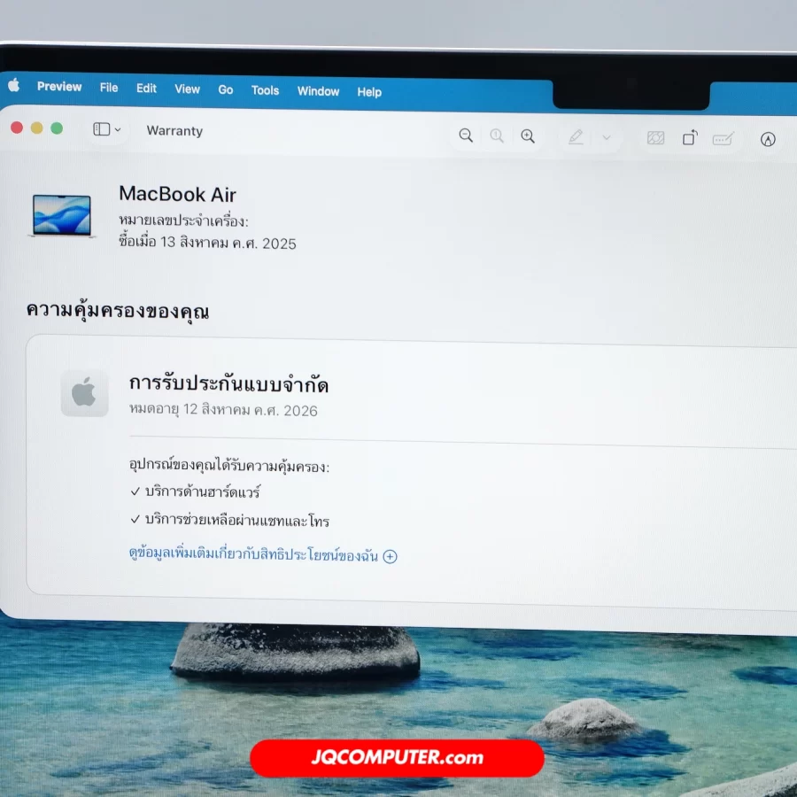 | การรับประกัน | ประกันศูนย์ Apple ถึง 12 August 2026 |