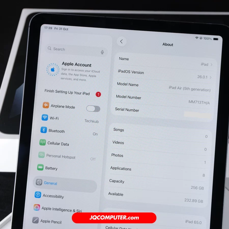 | สุขภาพแบตเตอรี่ | 100% (Cycle Count: 1 รอบ) |