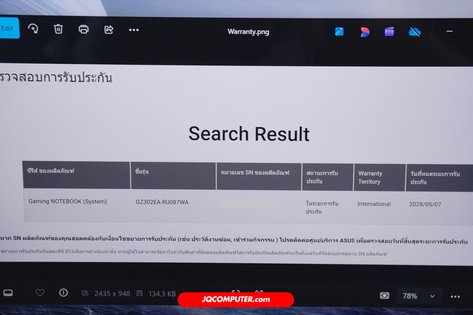 | การรับประกัน | ประกันศูนย์ Asus On-site ถึง 7 May 2028 (พร้อมประกันอุบัติเหตุ Accidental Damage ถึง 6 May 2026) |