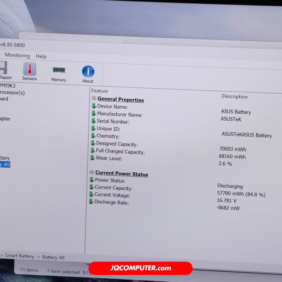 | สุขภาพแบตเตอรี่ | 96% (ปกติ) |