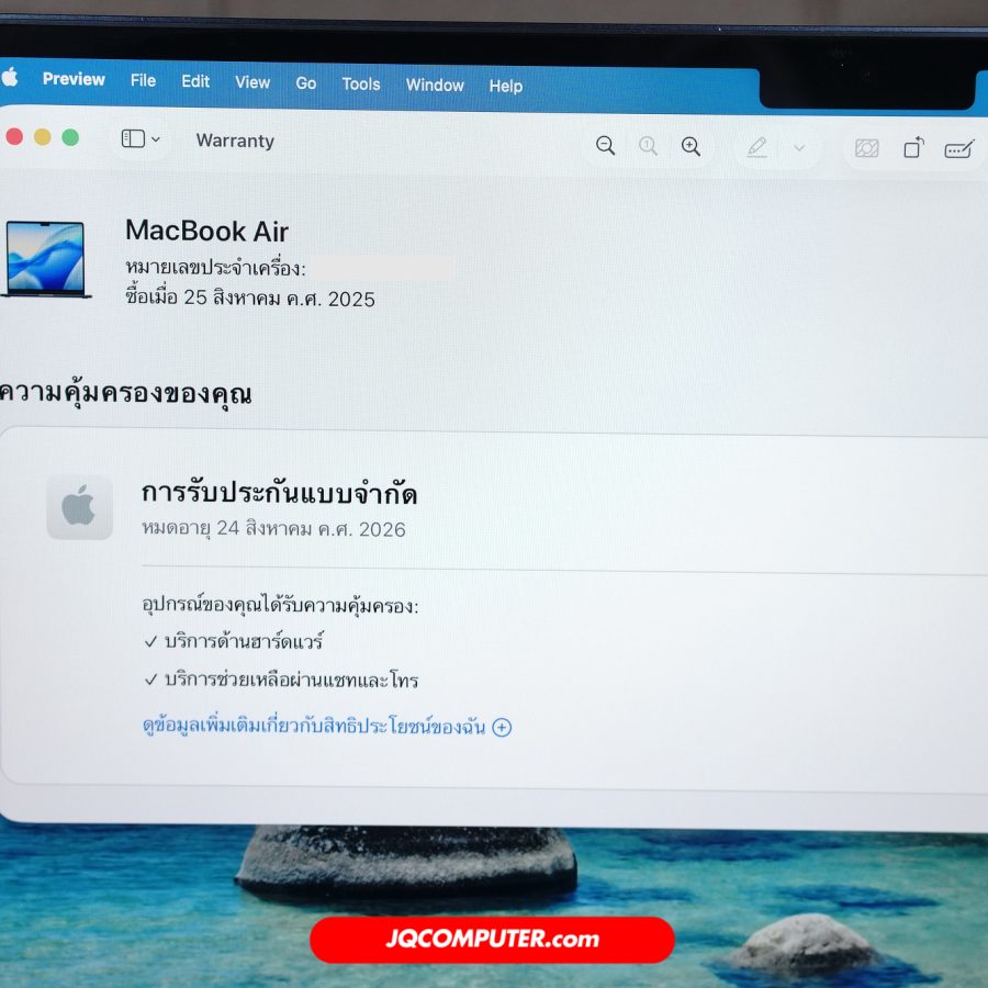 | การรับประกัน | ประกันศูนย์ Apple ถึง 24 August 2026 |