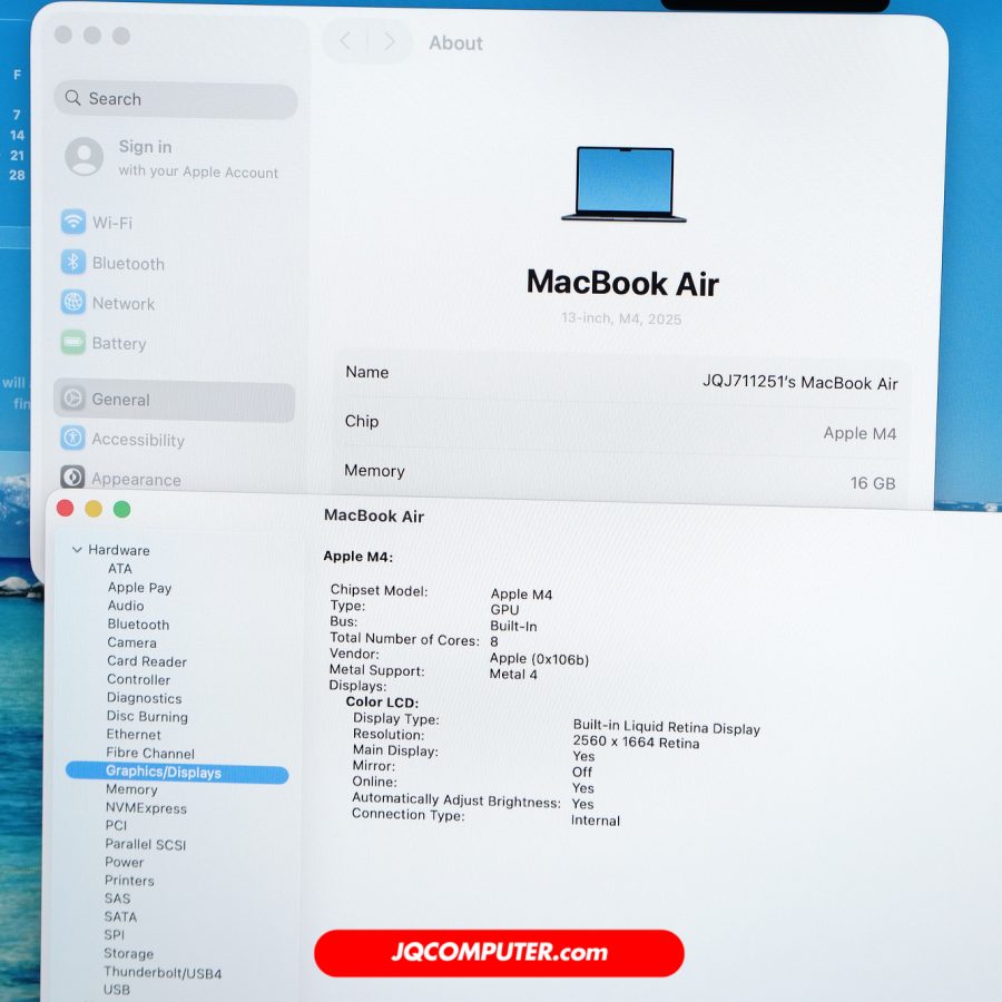 | โปรเซสเซอร์ | Apple M4 (CPU 8-core) |