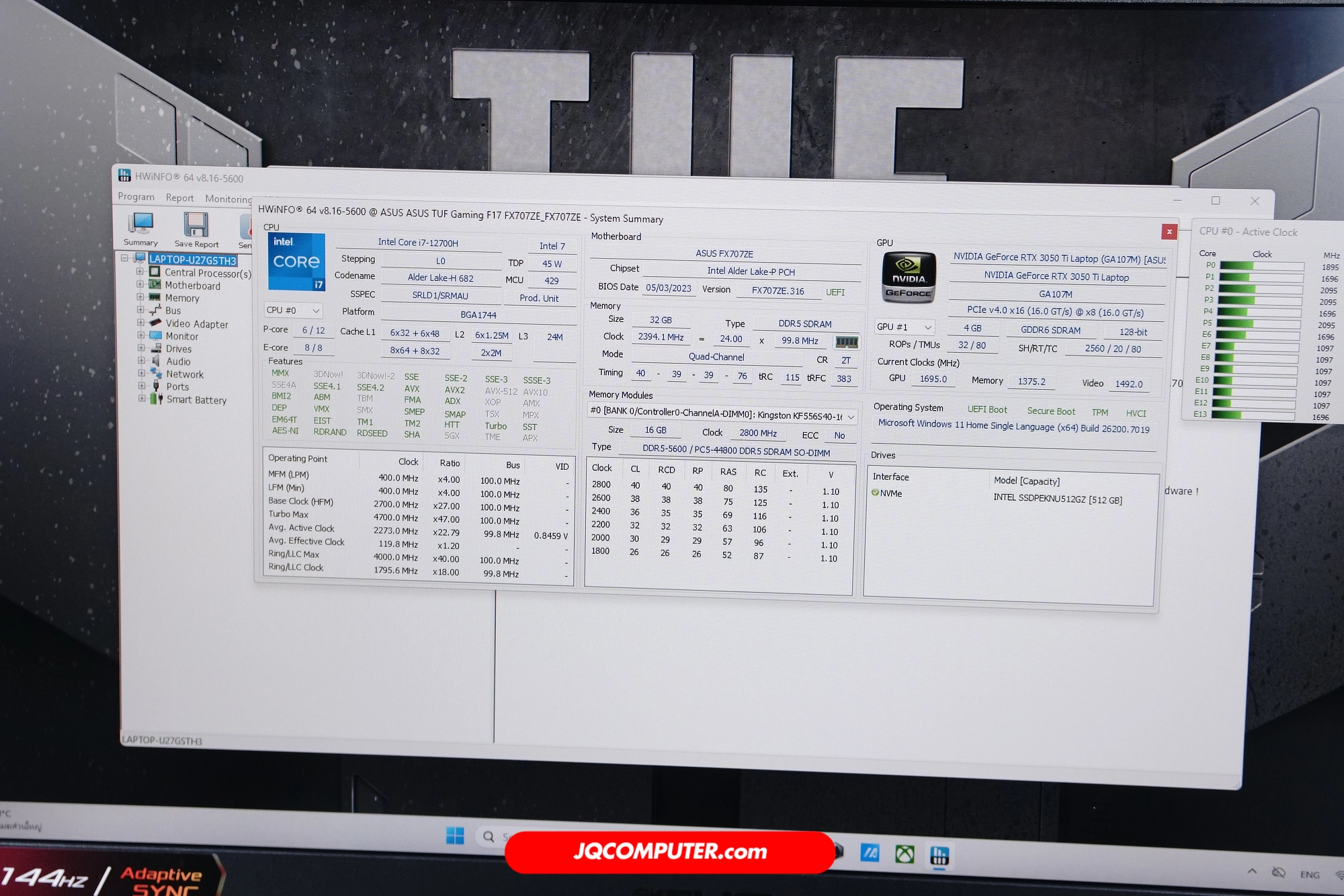 | โปรเซสเซอร์ | Intel Core i7-12700H |