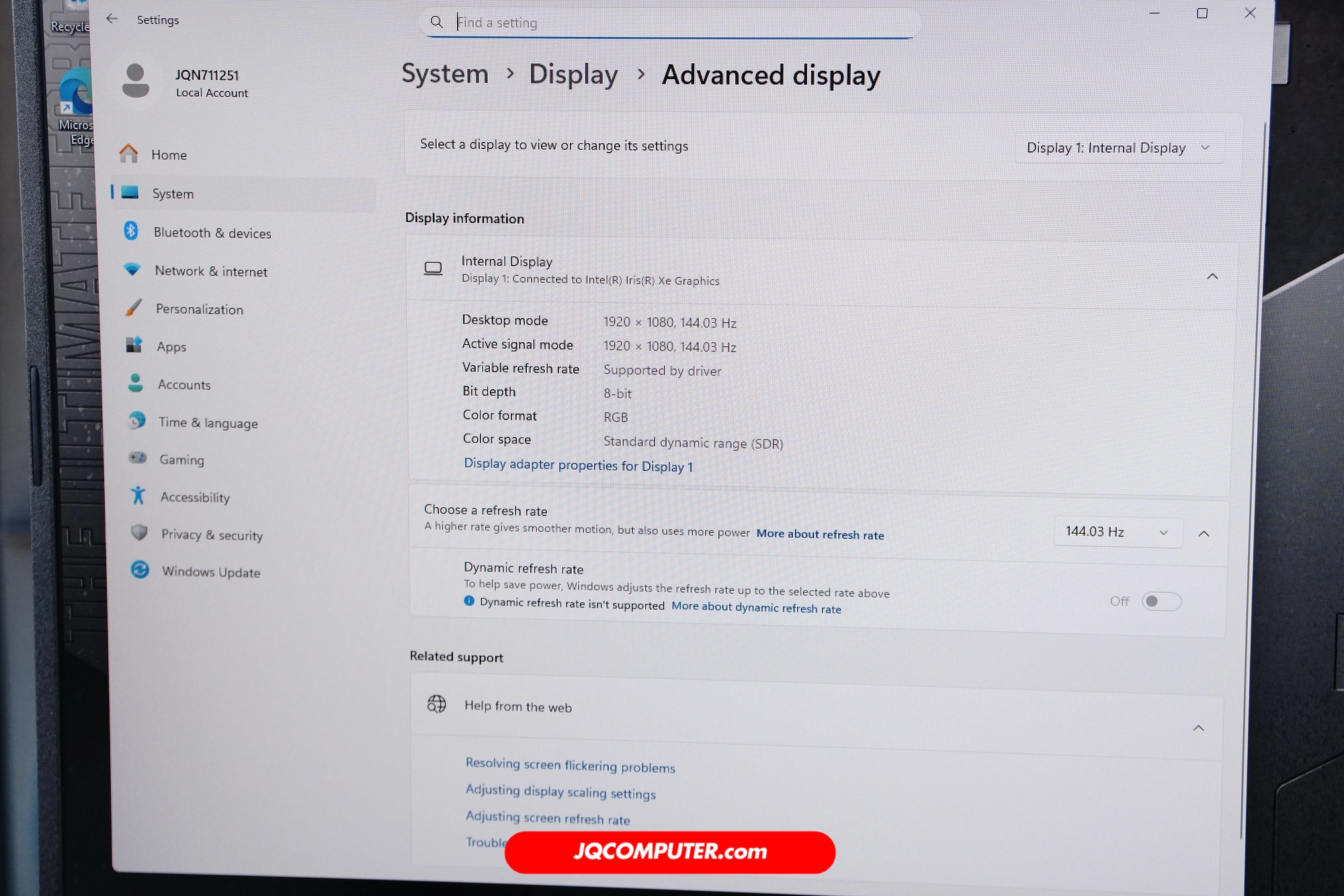 | จอภาพ | 17.3-inch, FHD (1920×1080), 144Hz, IPS, Anti-Glare |