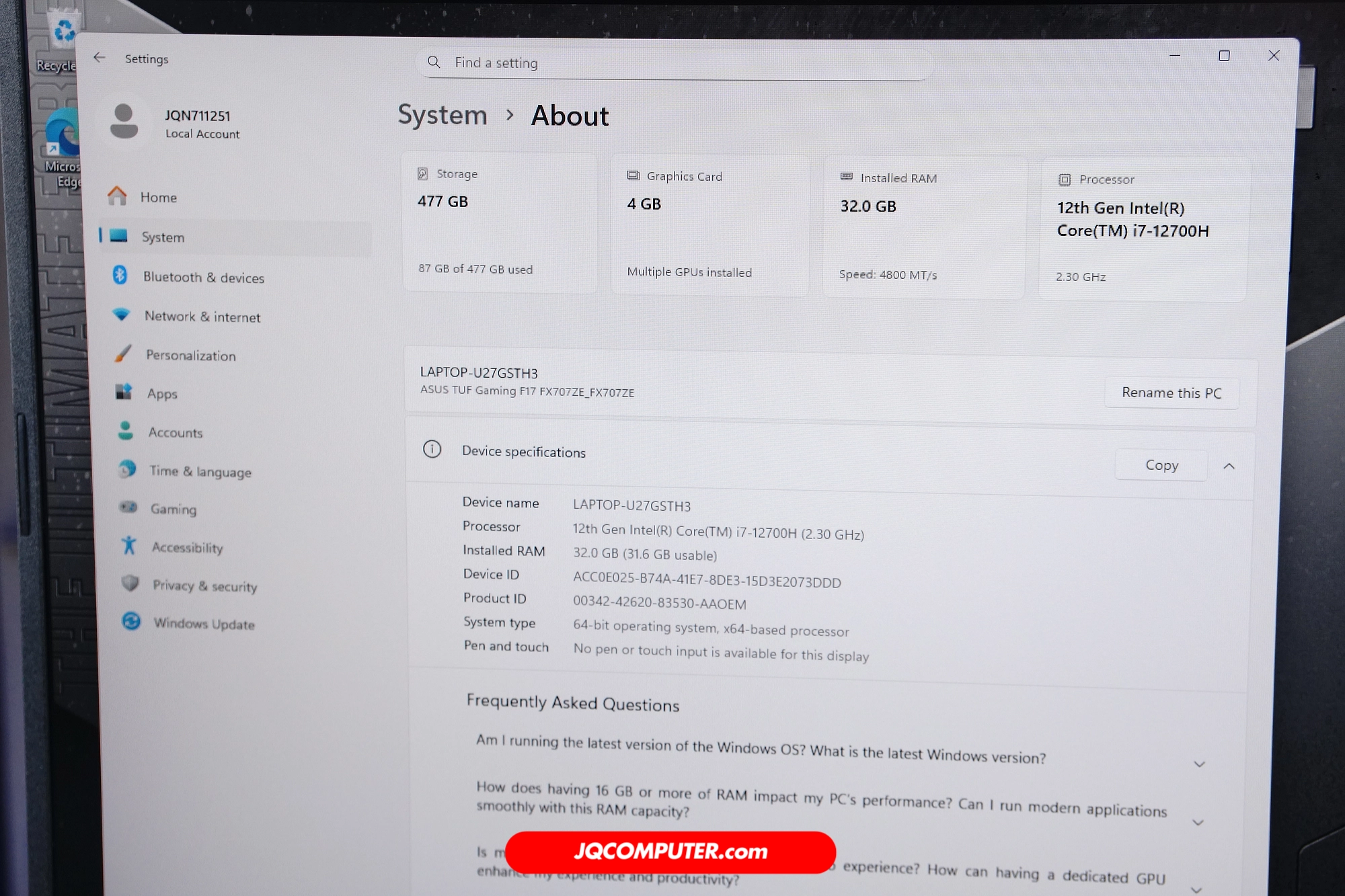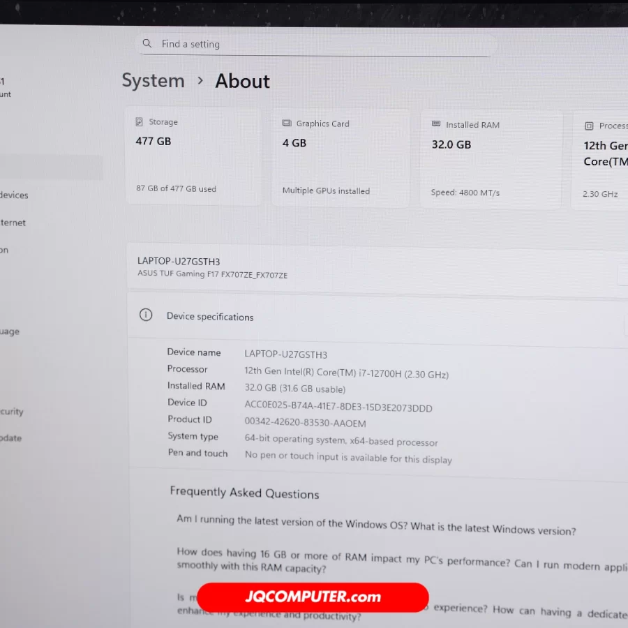 | รุ่น | ASUS TUF GAMING F17 |