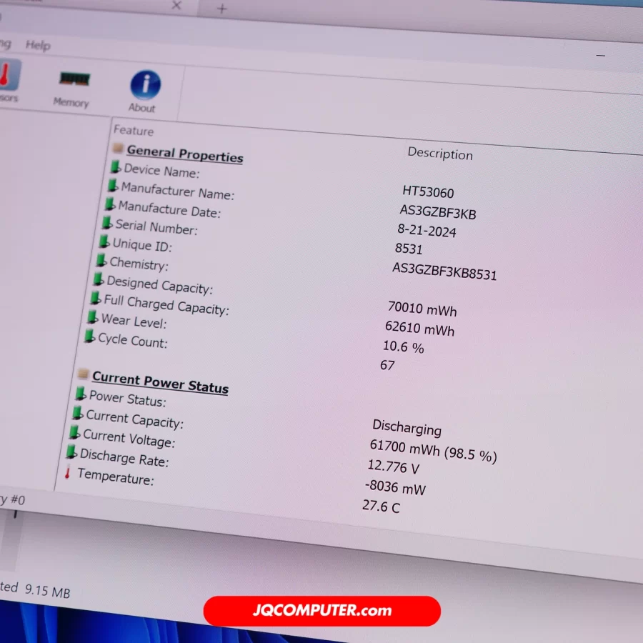 สุขภาพแบตเตอรี่ | 90% (Cycle Count: 66 รอบ) |