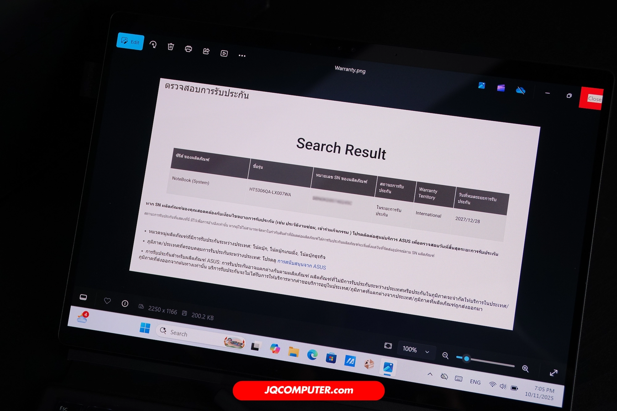 การรับประกัน | ประกันศูนย์ Asus On-site ถึง 28 December 2027 |