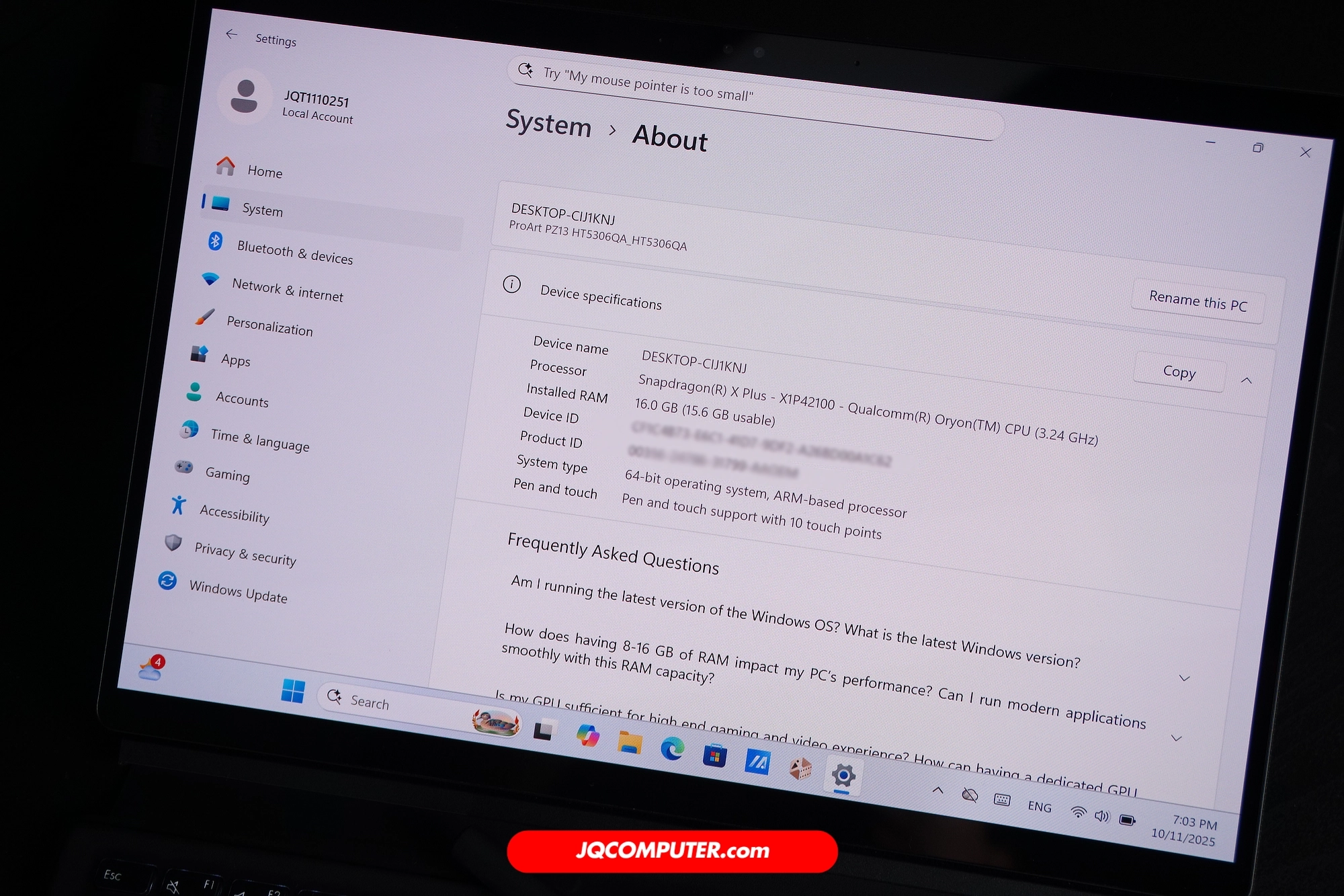 โปรเซสเซอร์ | Snapdragon X Plus (X1P-42-100) |