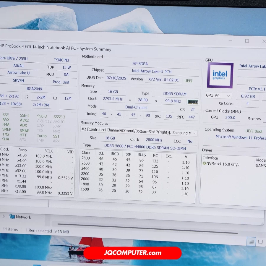| โปรเซสเซอร์ | Intel Core Ultra 7 255H |