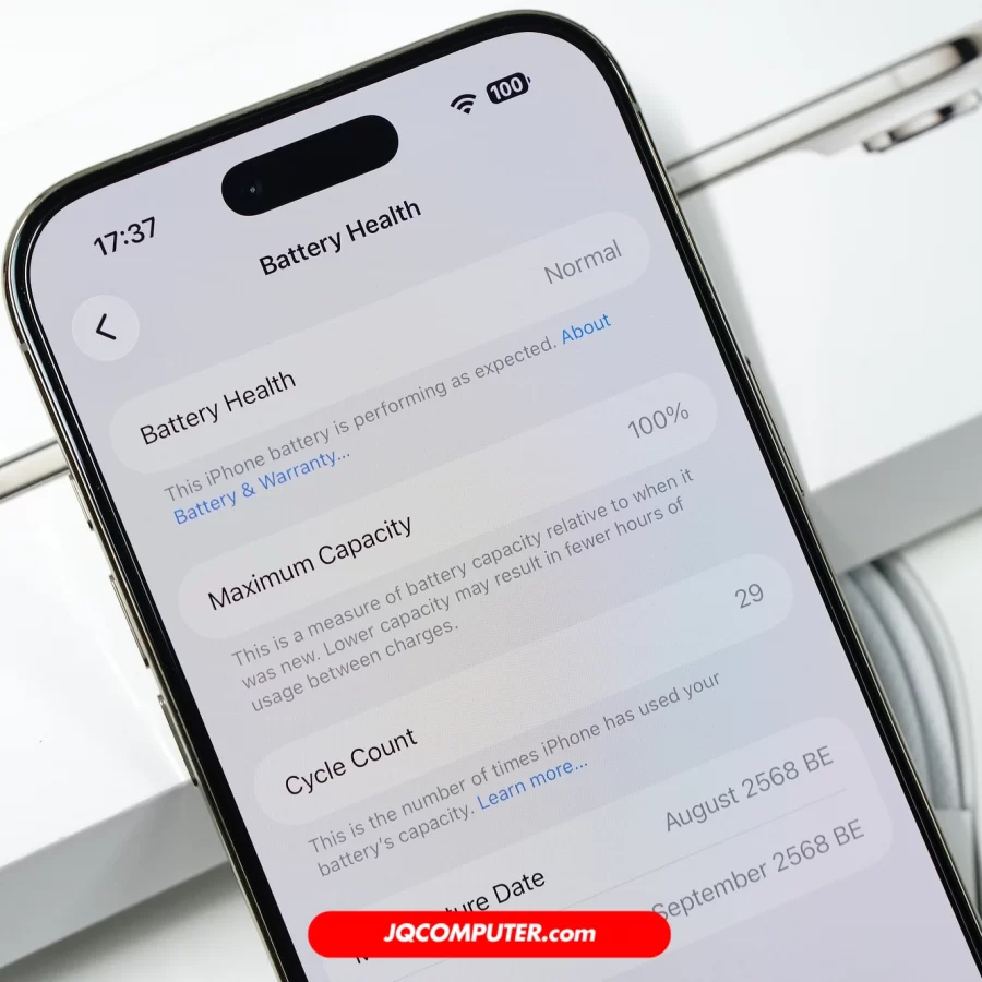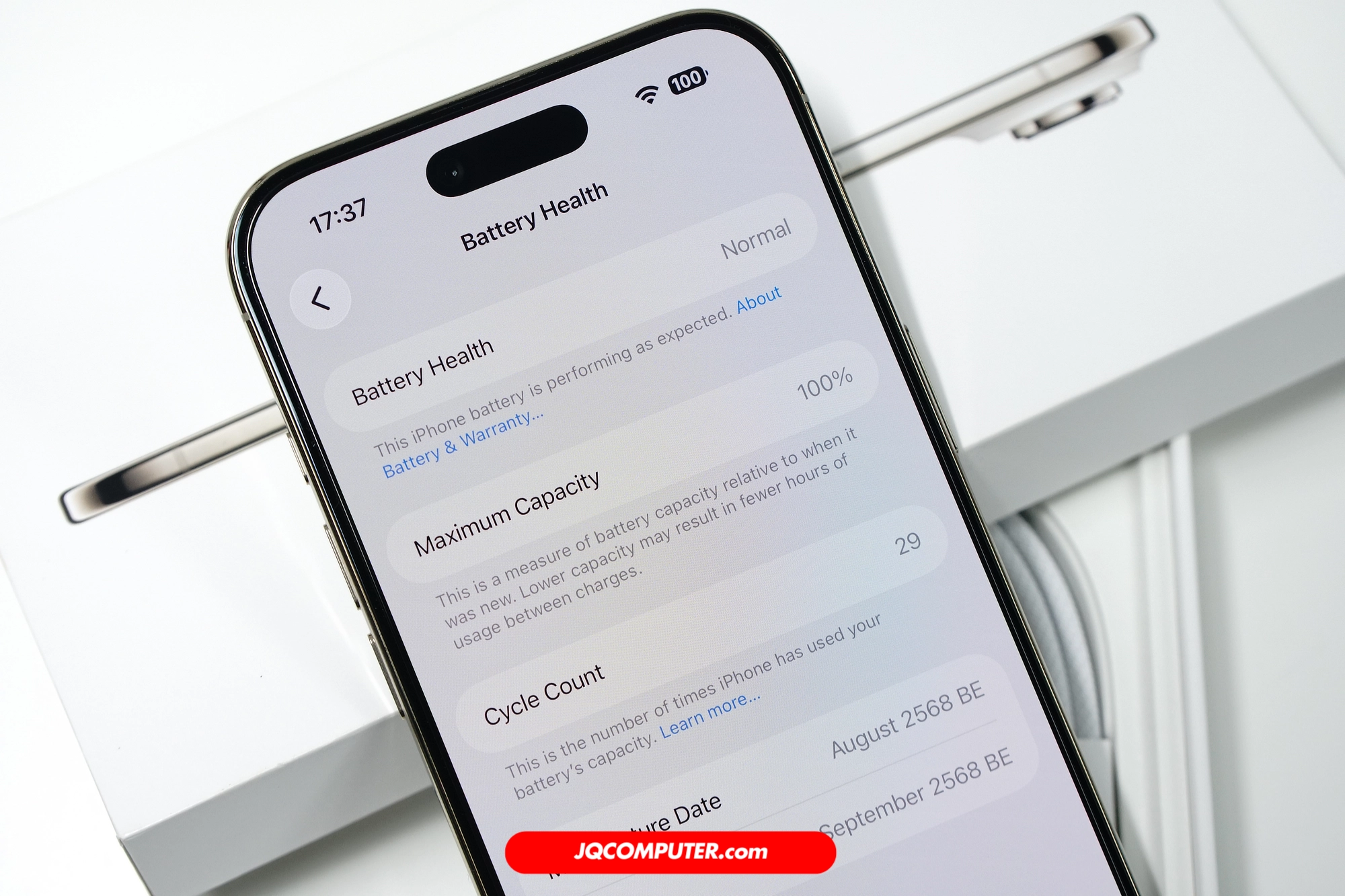 | สุขภาพแบตเตอรี่ | 100% (Cycle Count: 29 รอบ) |