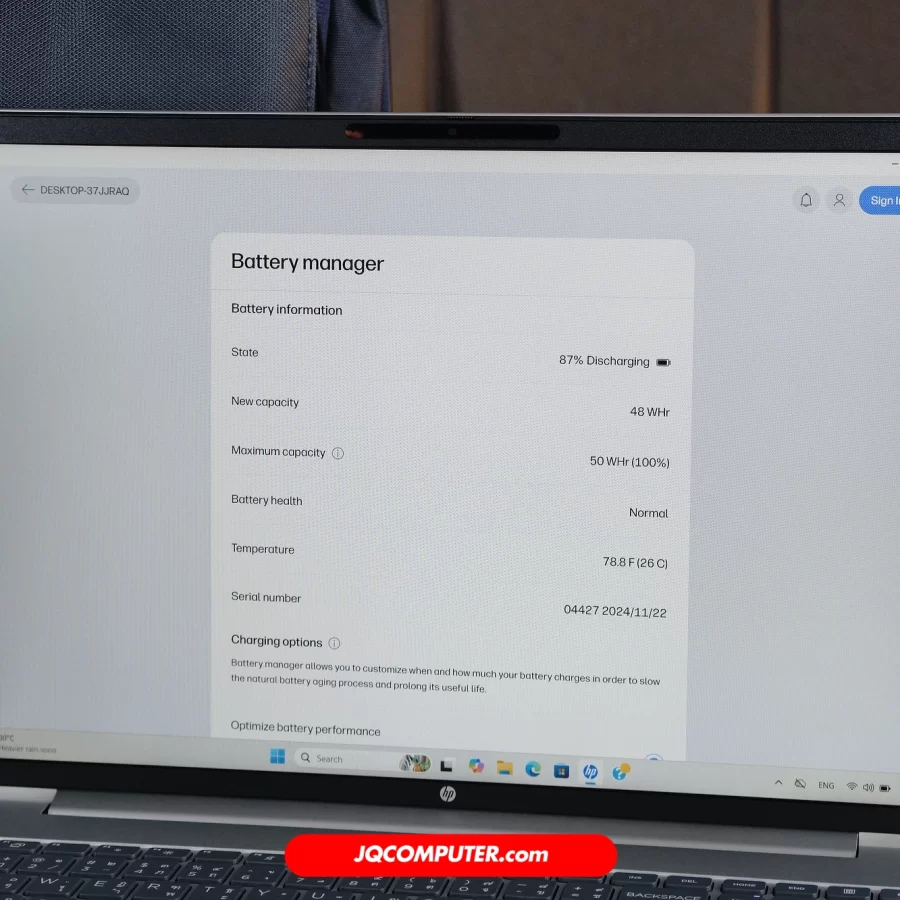 สุขภาพแบตเตอรี่ | 100% (Cycle Count: 2 รอบ) |