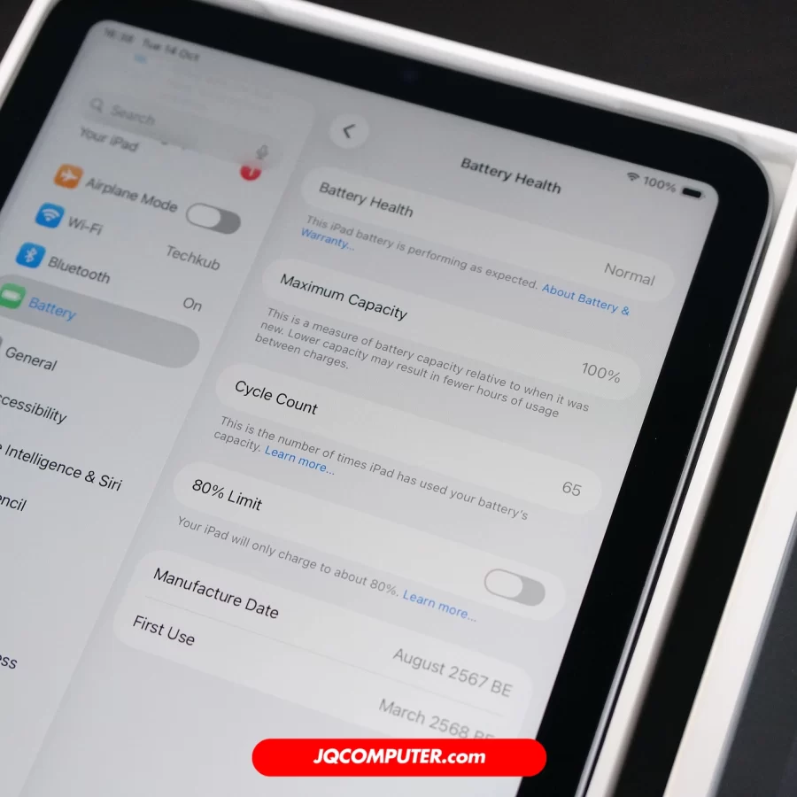 สุขภาพแบตเตอรี่ | 100% (Cycle Count: 65 รอบ) |
