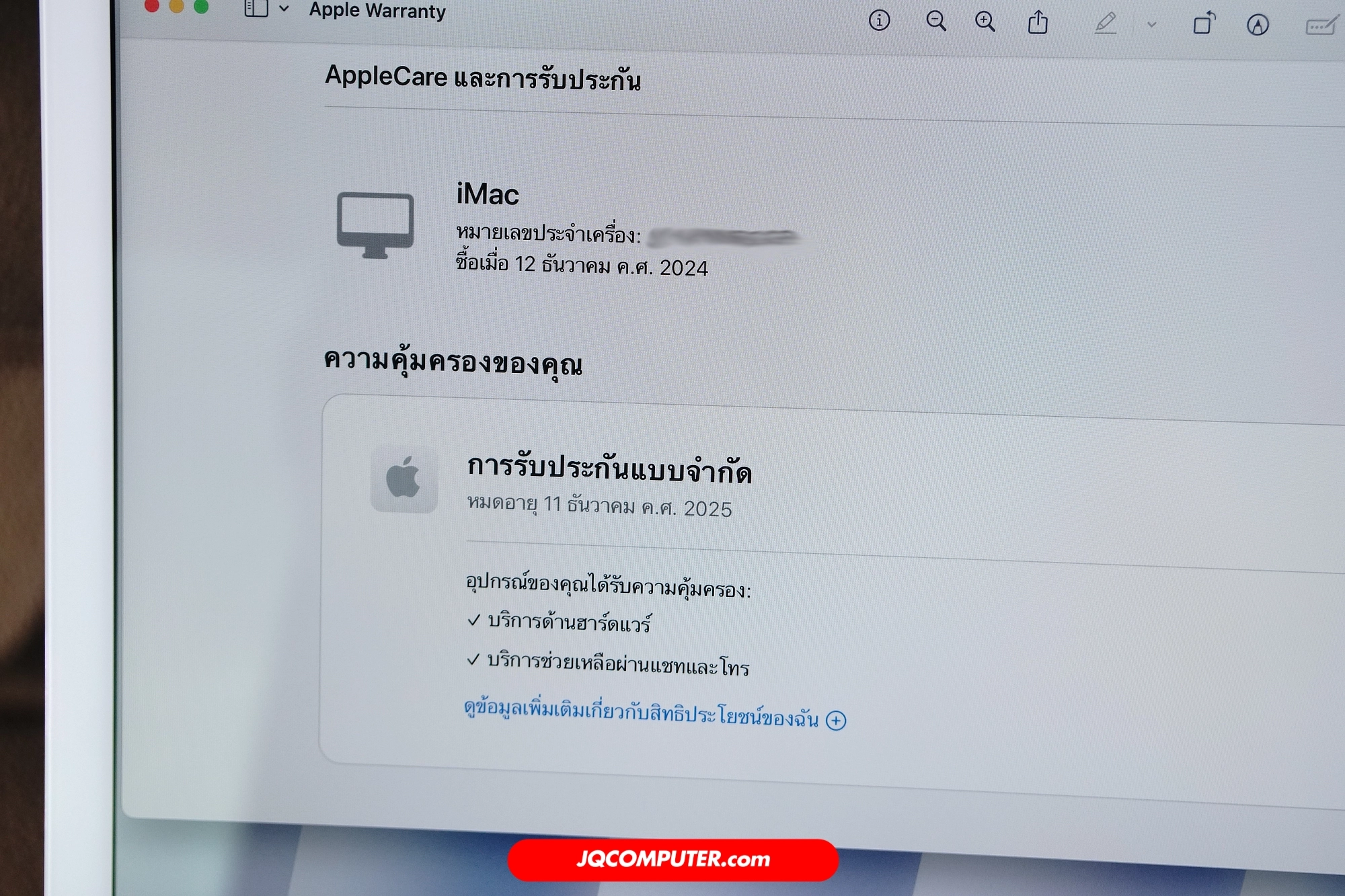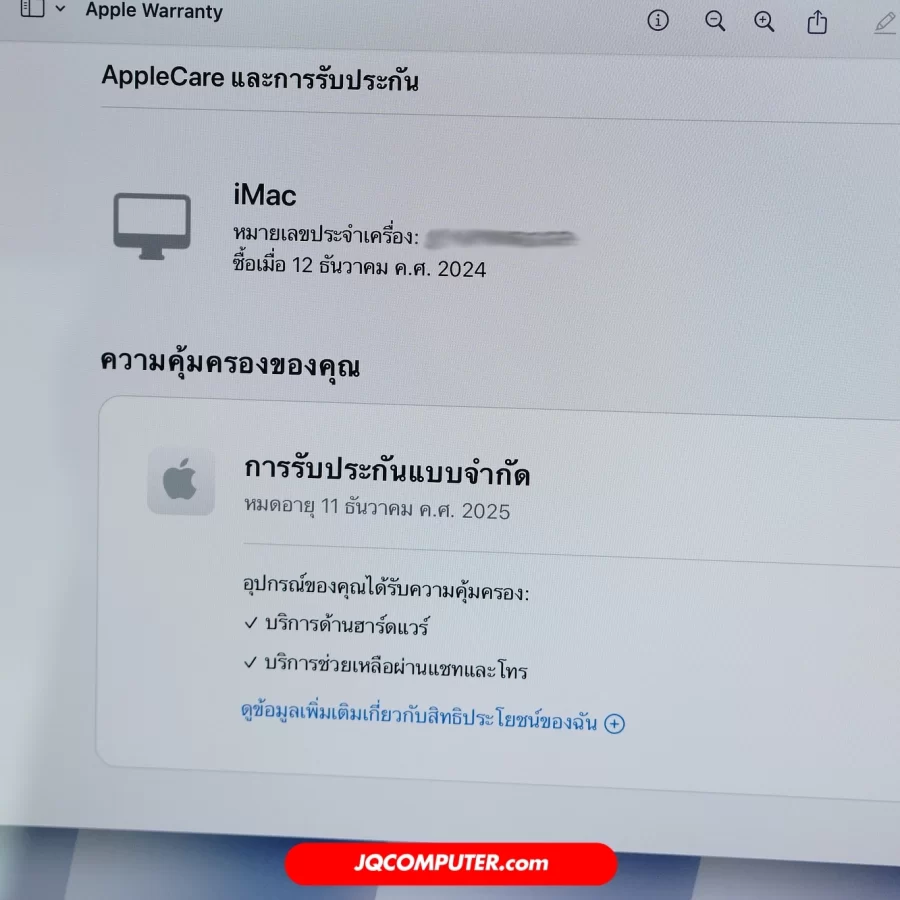 การรับประกัน | ประกันศูนย์ Apple ถึง 11 December 2025 |