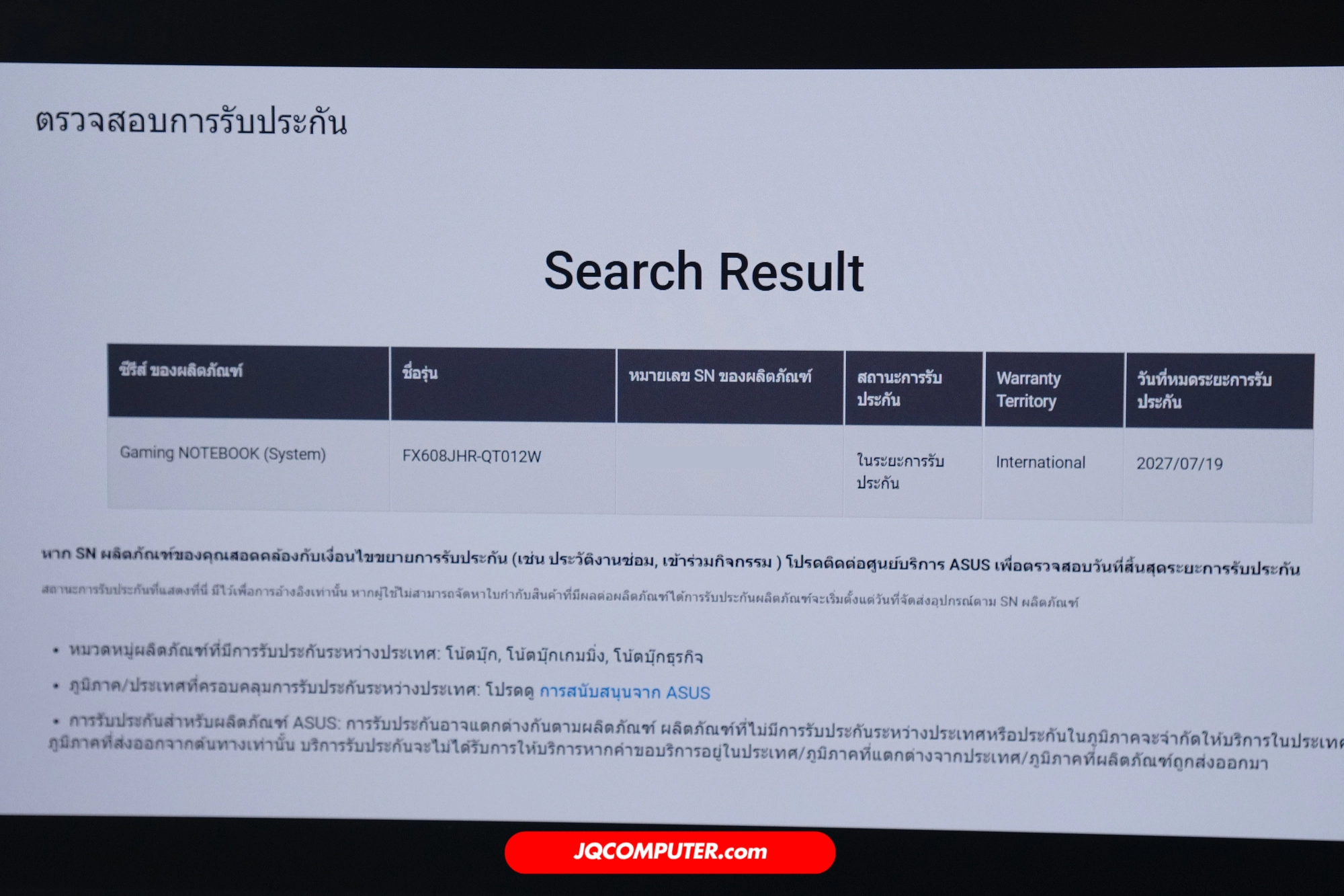 | การรับประกัน | ประกันศูนย์ Asus ถึง 19 July 2027 |