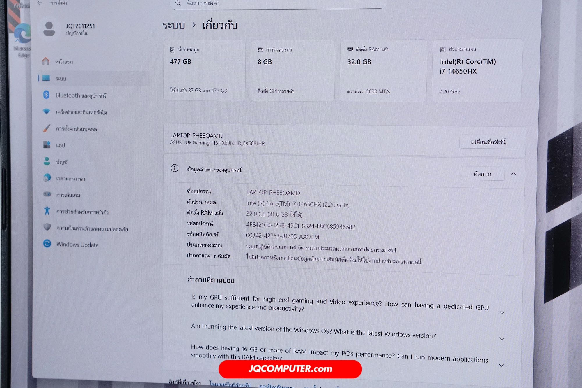| โปรเซสเซอร์ | Intel Core i7-14650HX |