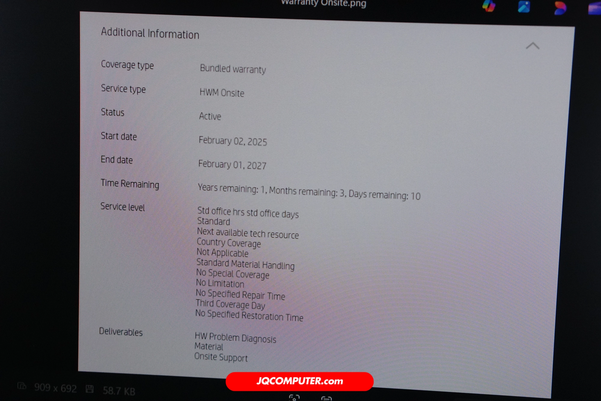 การรับประกัน | ประกันศูนย์ HP On-site ถึง 1 February 2027 (พร้อมประกันอุบัติเหตุ On-site Accidental Damage ถึง 1 February 2026) |