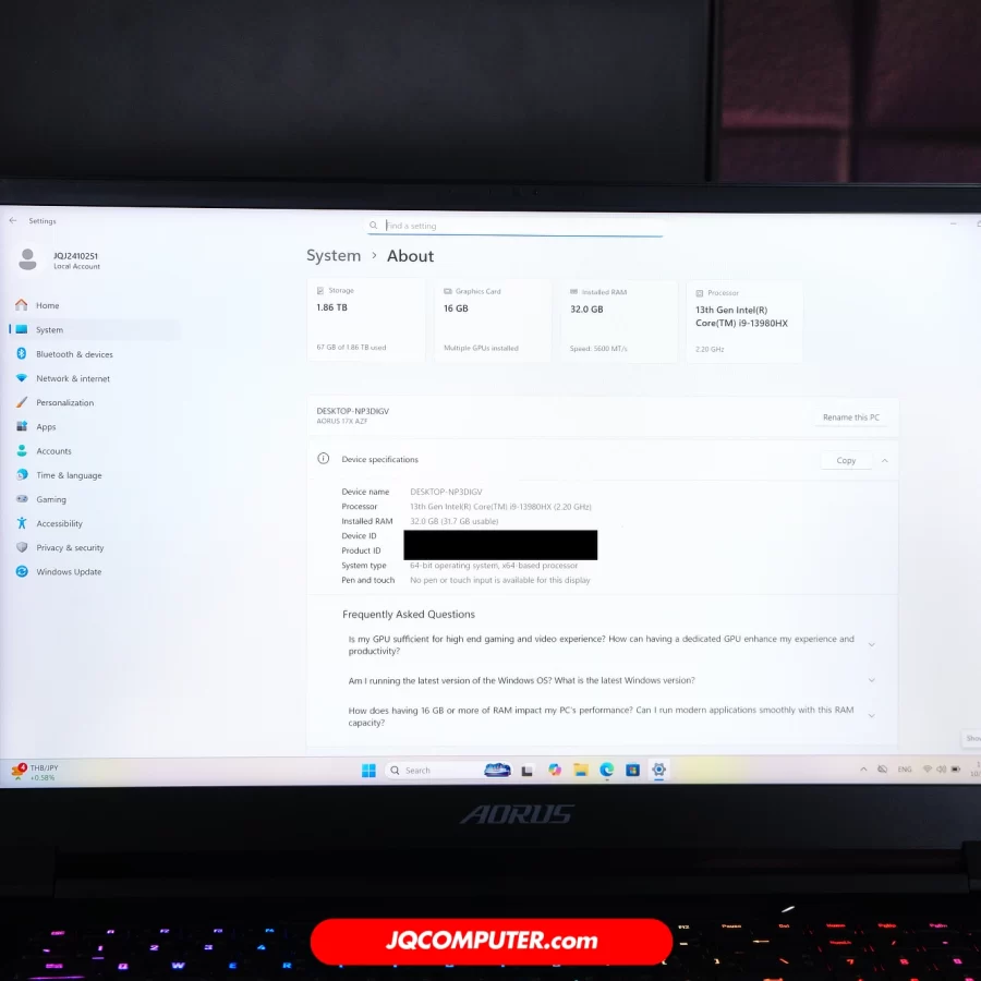 | รุ่น | Gigabyte AORUS 17X |