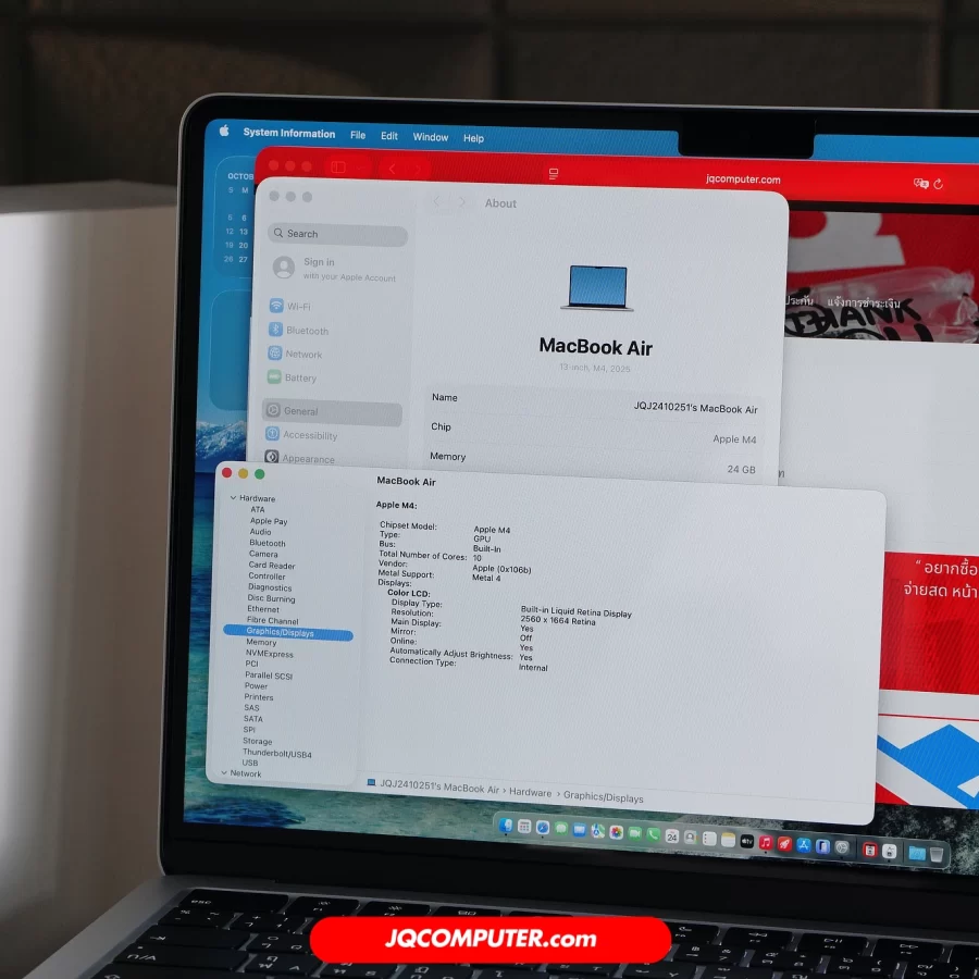 | จอภาพ | Liquid Retina 13.6-inch (2560×1664) with True Tone |
