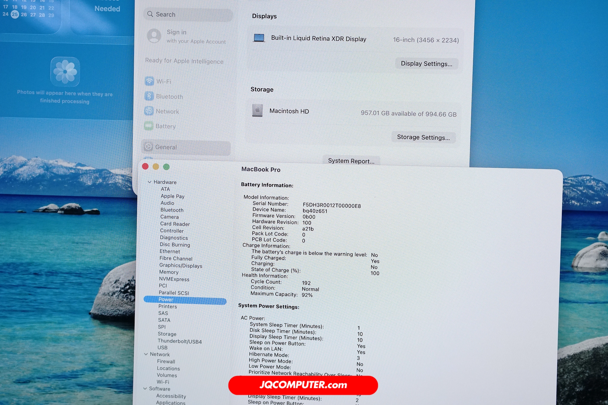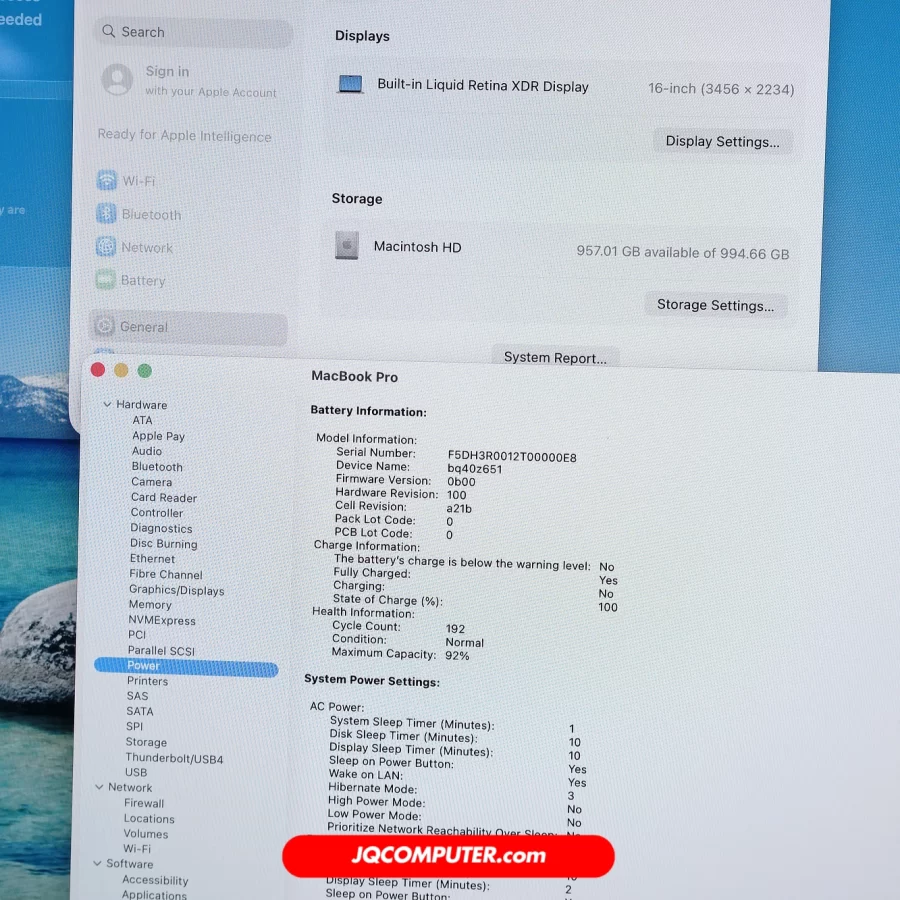 | สุขภาพแบตเตอรี่ | 92% (Cycle Count: 192 รอบ) |