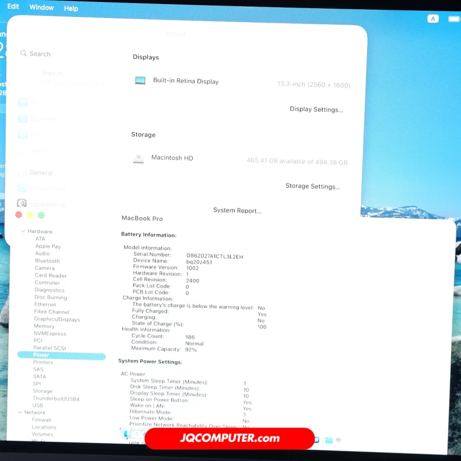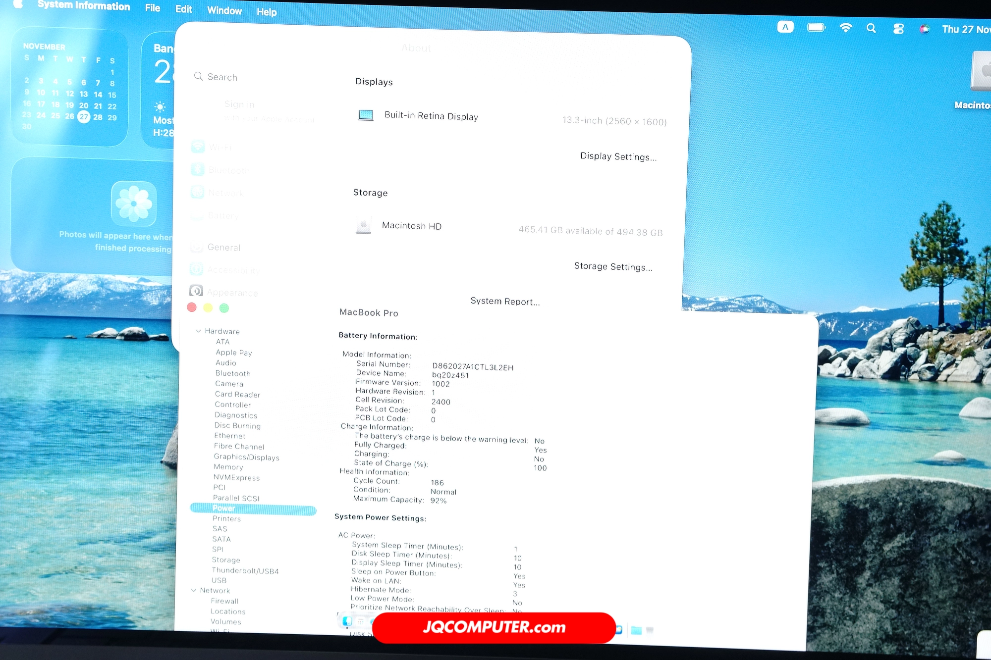 | สุขภาพแบตเตอรี่ | 92% (Cycle Count: 186 รอบ) |