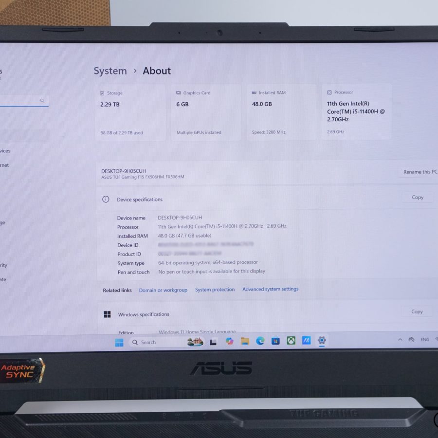 Asus TUF Gaming F15 (FX506HM-HN008T) | i5-11400H | RTX 3060 | RAM 48 GB | SSD 2.5 TB | จอ 15.6″ FHD 144Hz | แบตเตอรี่ 77.7% | มือสอง Grade C | ครบกล่อง พร้อม Asus Bag | ประกัน JQcomputer 30 วัน