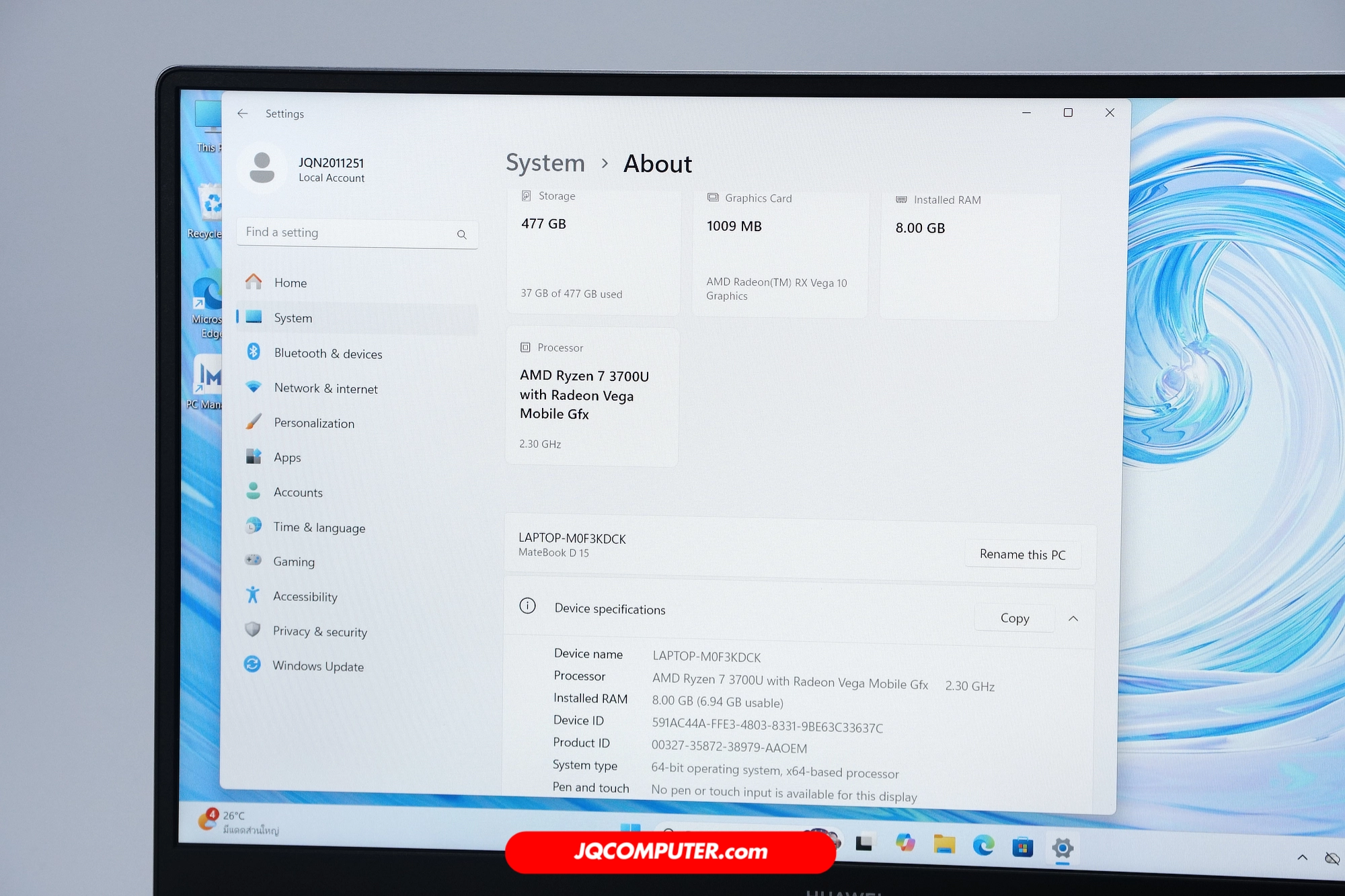 | รุ่น | Huawei MateBook D15 |