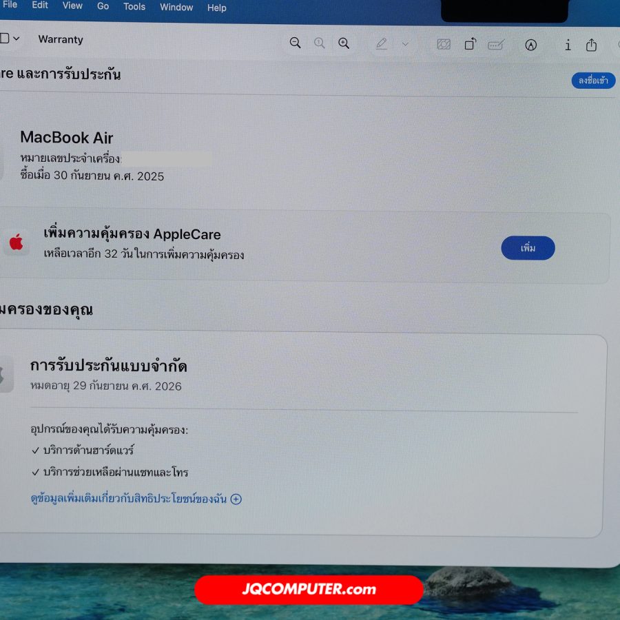 | การรับประกัน | ประกันศูนย์ Apple ถึง 29 September 2026 |